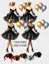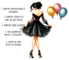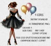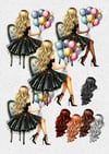 Birthday girl. 4 gorgeous girls, each has 4 skin tones + 5 hair clipart. 38 PNGs. Gold splodge Background & champagne bucket element supplied as additional files. Sublimation, print. All base dolls are blonde. Please use hair clipart as required.