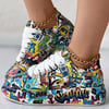 Ajoutez une touche de style urbain à vos tenues avec ces baskets imprimées graffiti, spécialement conçues pour celles qui aiment se démarquer. Modernes, confortables et ultra‑tendance, ces sneakers à plateforme sont parfaites pour un look streetwear affirmé et original.