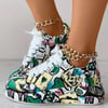Baskets femme graffiti à plateforme – sneakers mode à lacets style urbain