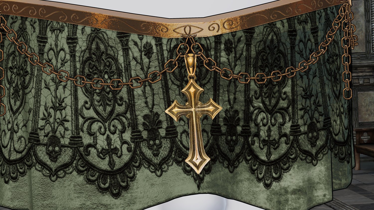 An elegant and gothic veil with lace and velvety details. Fit to the mature Amelia head. I loved making this, and texturing especially! Check out the King's Council bundle, which includes this veil, a free flow toy, and a halo!