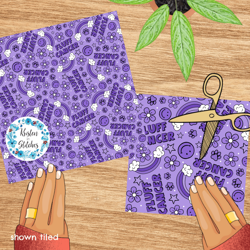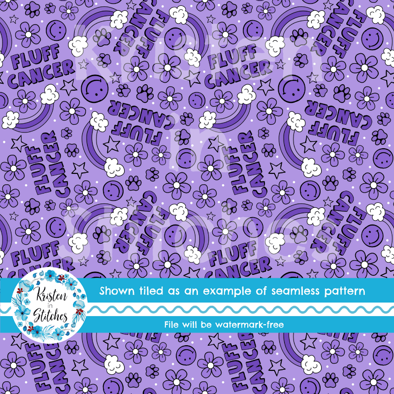 Fluff Cancer Dog Paw Prints Rainbows Awareness Seamless Pattern