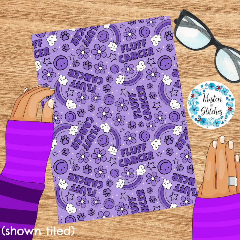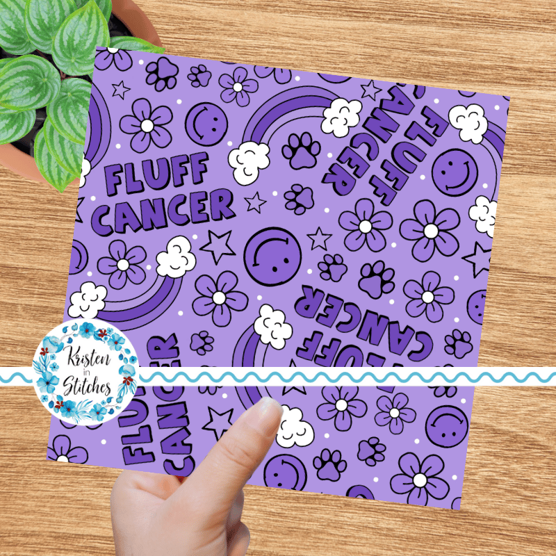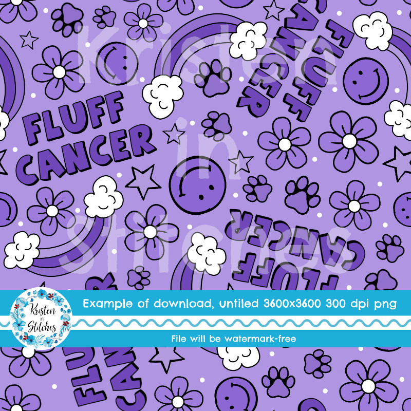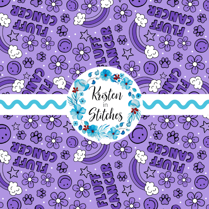 Fluff Cancer design with rainbows, paw prints, smiley faces and flowers.
