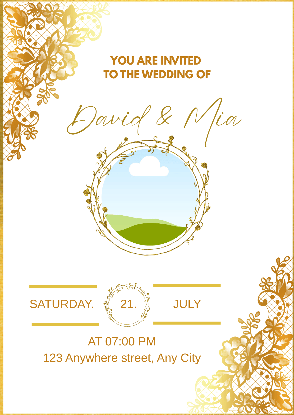 Luxury Wedding Invitation | Gold & White Digital Invite | Editable Text
