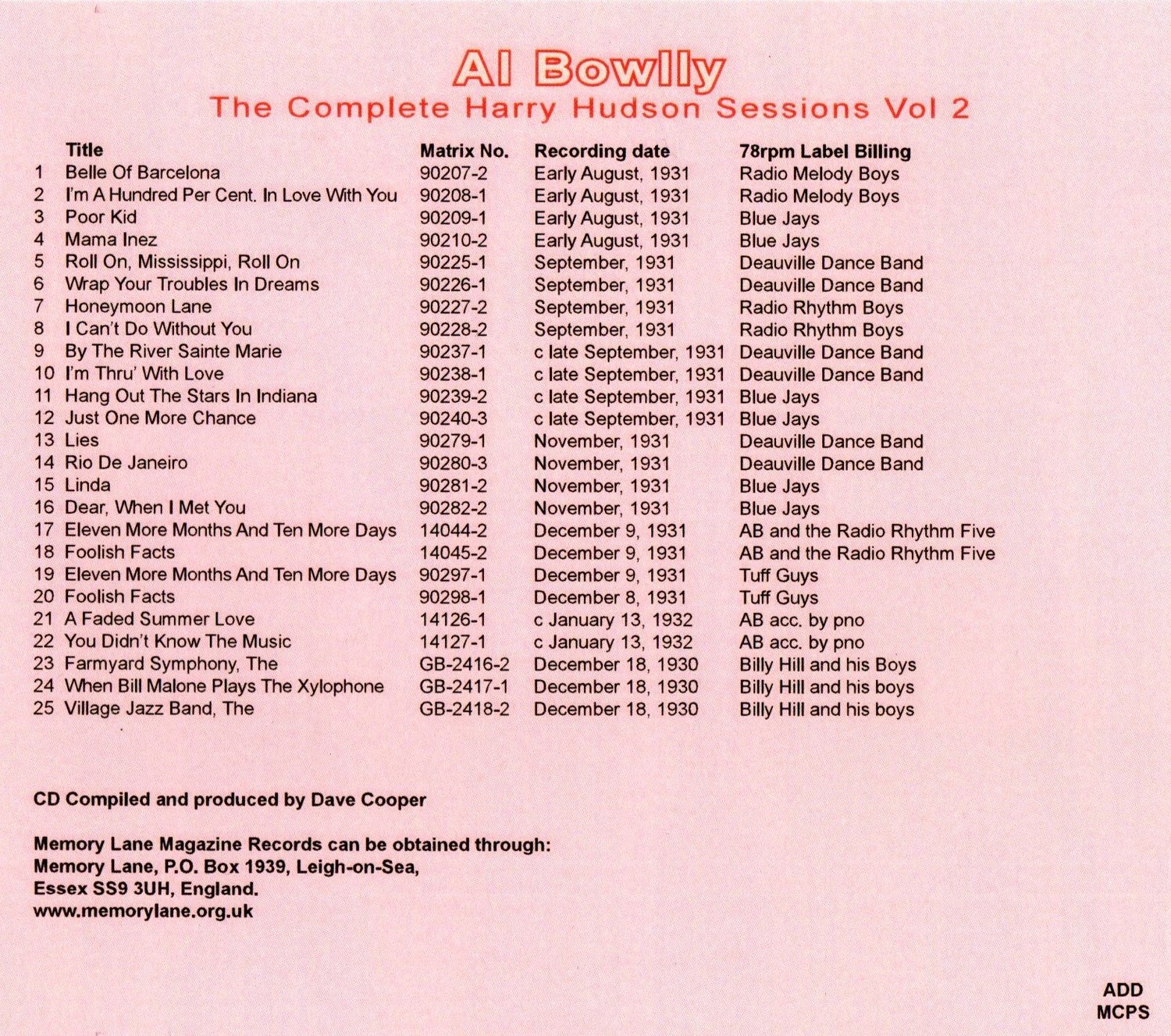 Al Bowlly - The Complete Harry Hudson Recordings Volume Two