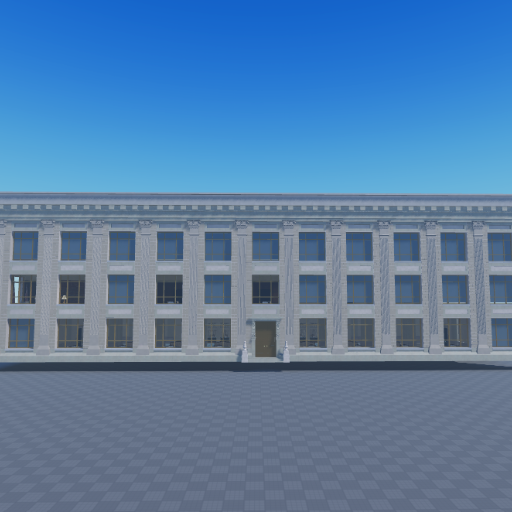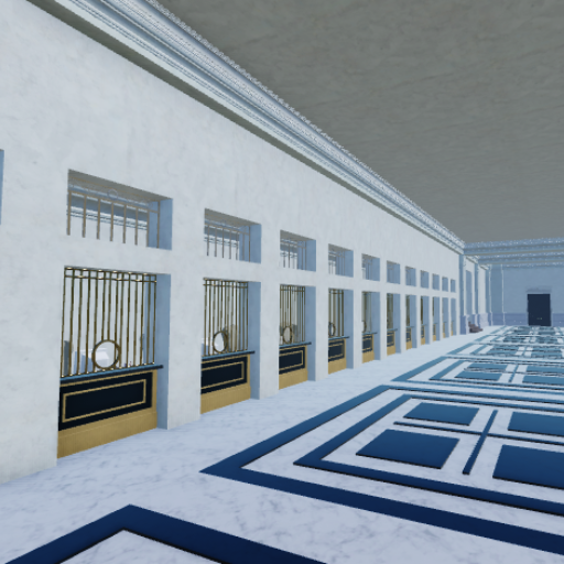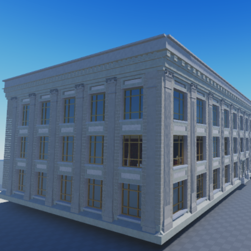 A bank with a detailed interior and exterior, including offices and a warehouse. It uses advanced materials.