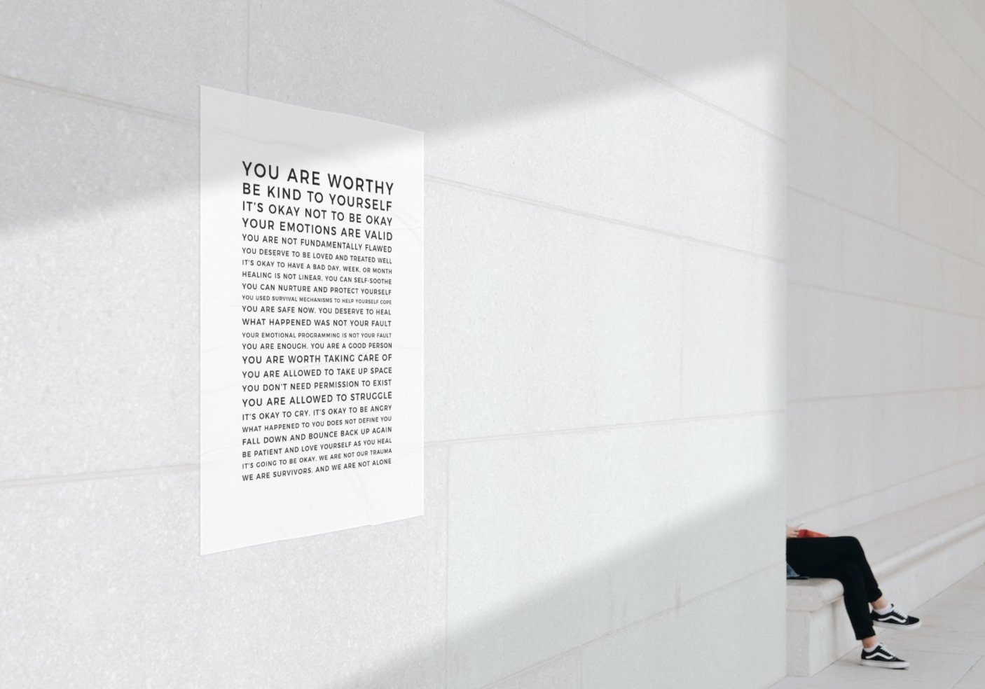 Each positive affirmation on the poster highlights important messages, such as determination, perseverance, and self-belief. By reading these affirmations daily, the Survivor's Manifesto aims to uplift and motivate those who see it.