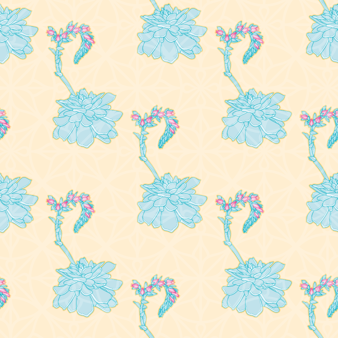 Aqua echeveria seamless vector pattern. Succulent plant illustration background.