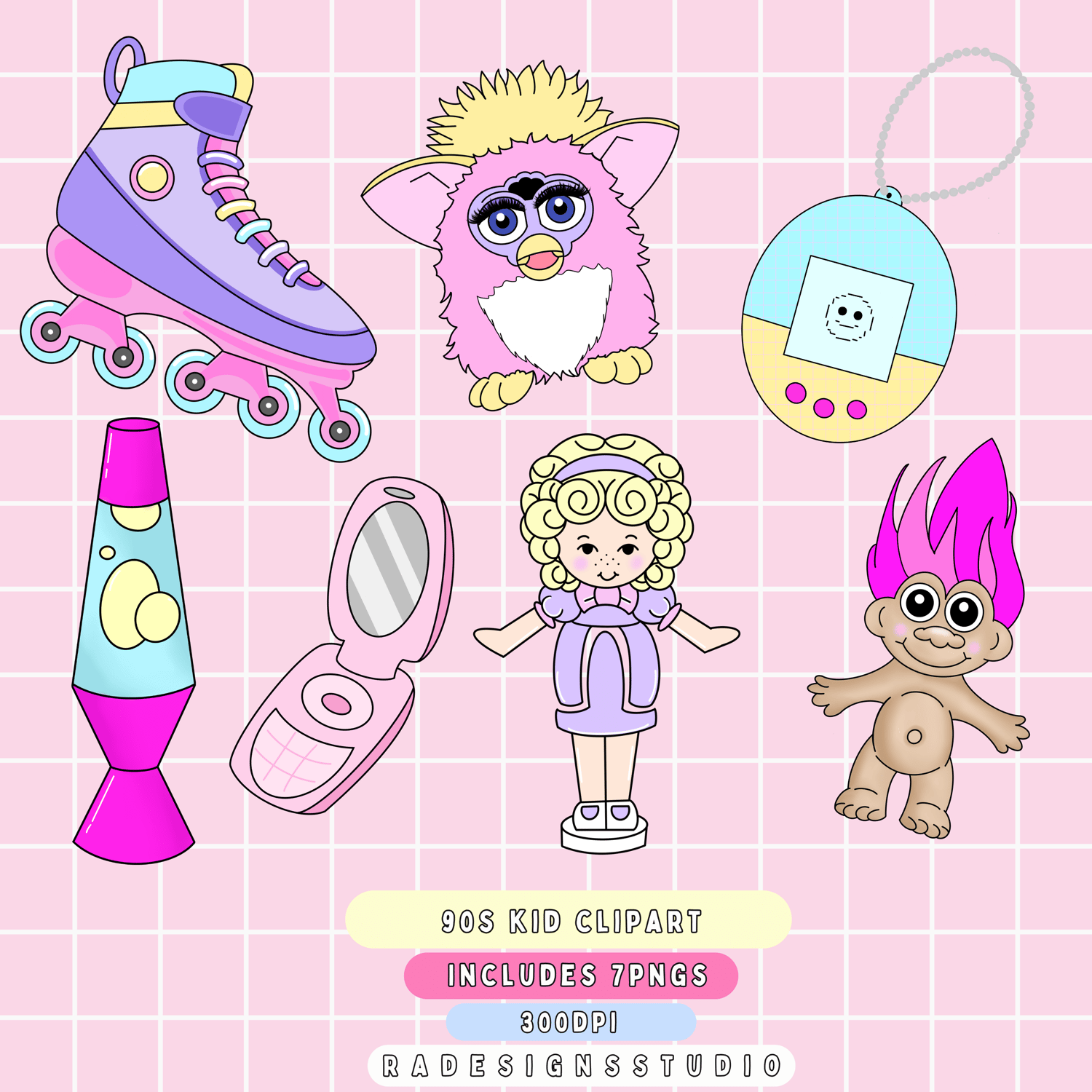 Instant digital download of our 90s kids doodles 7pngs