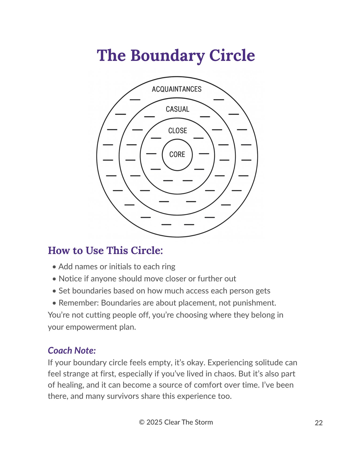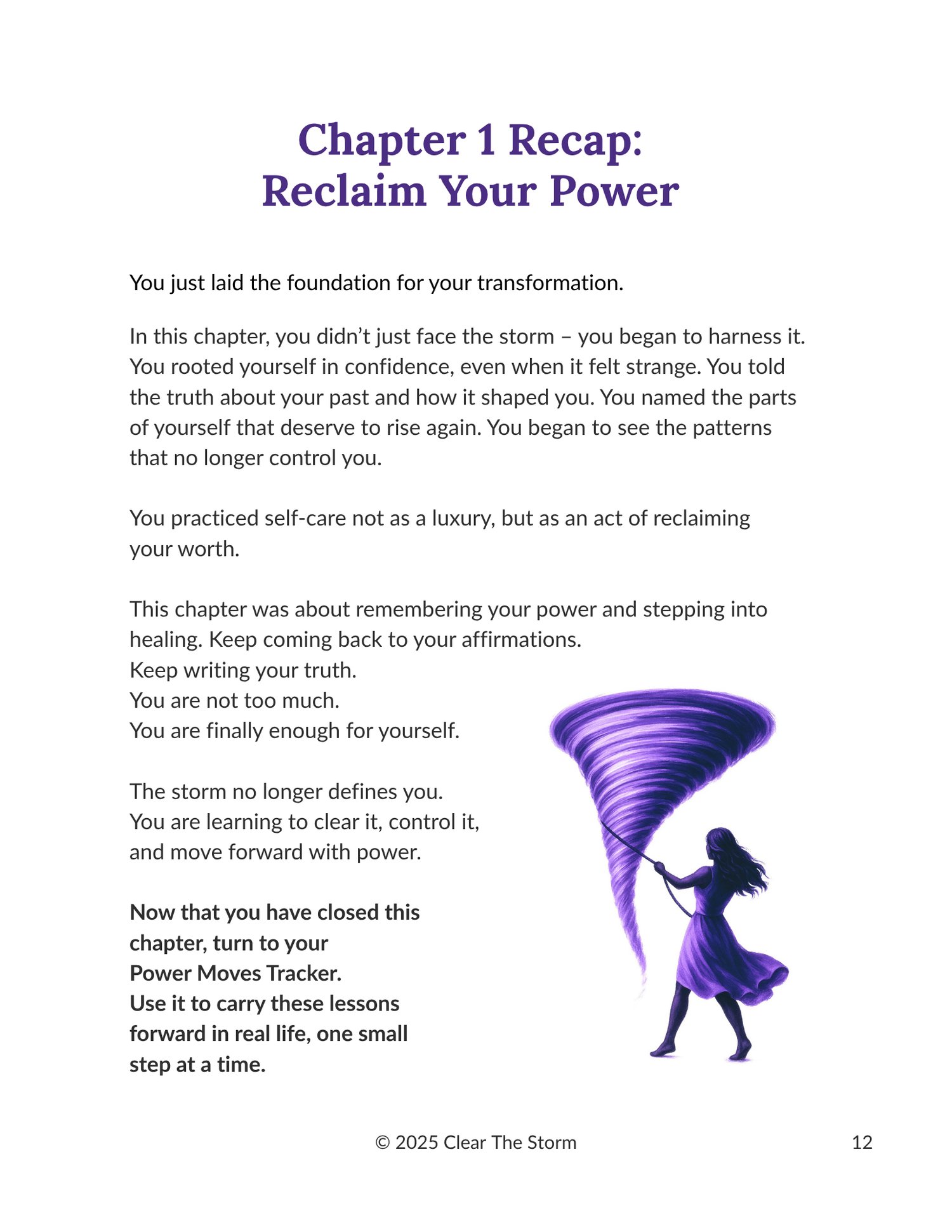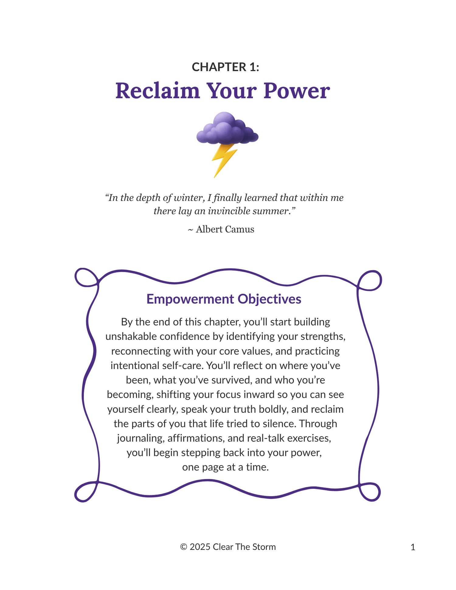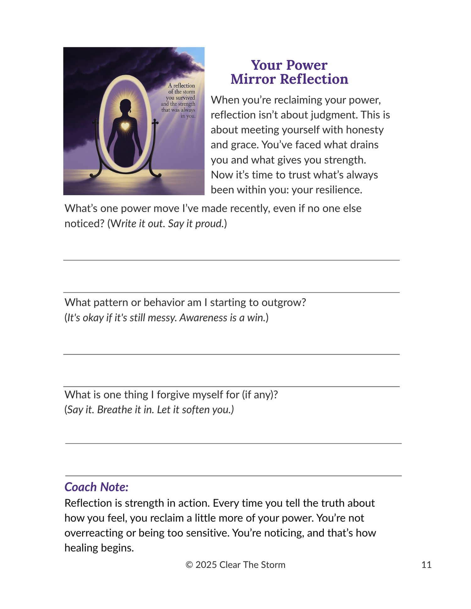 • Available now, the printable PDF of Clear The Storm: The Empowerment Workbook for Healing After Toxic Relationships.