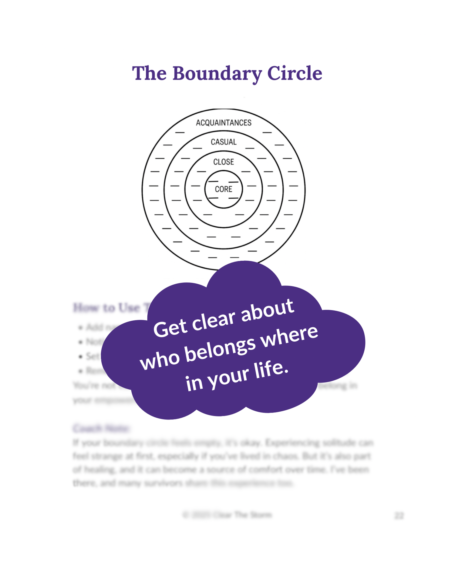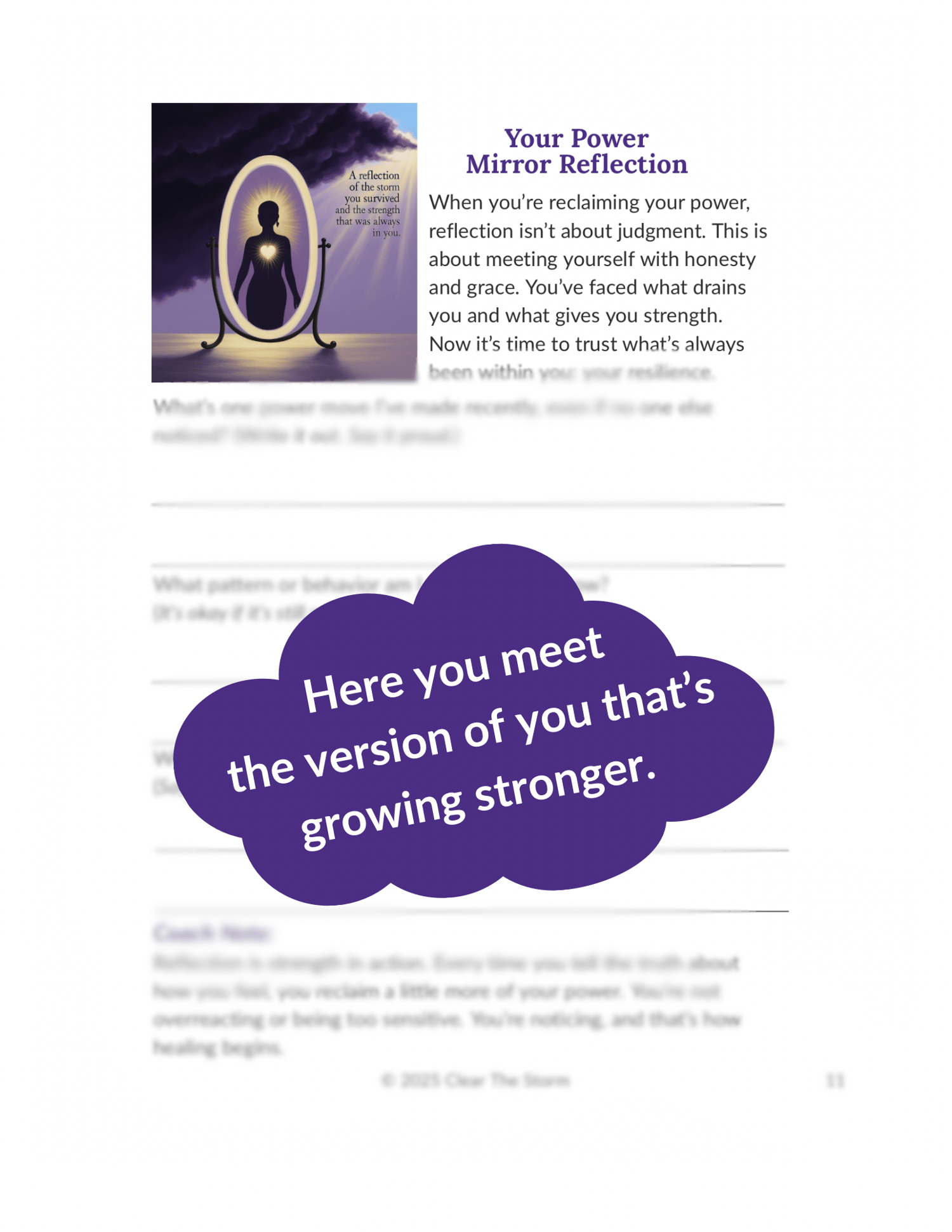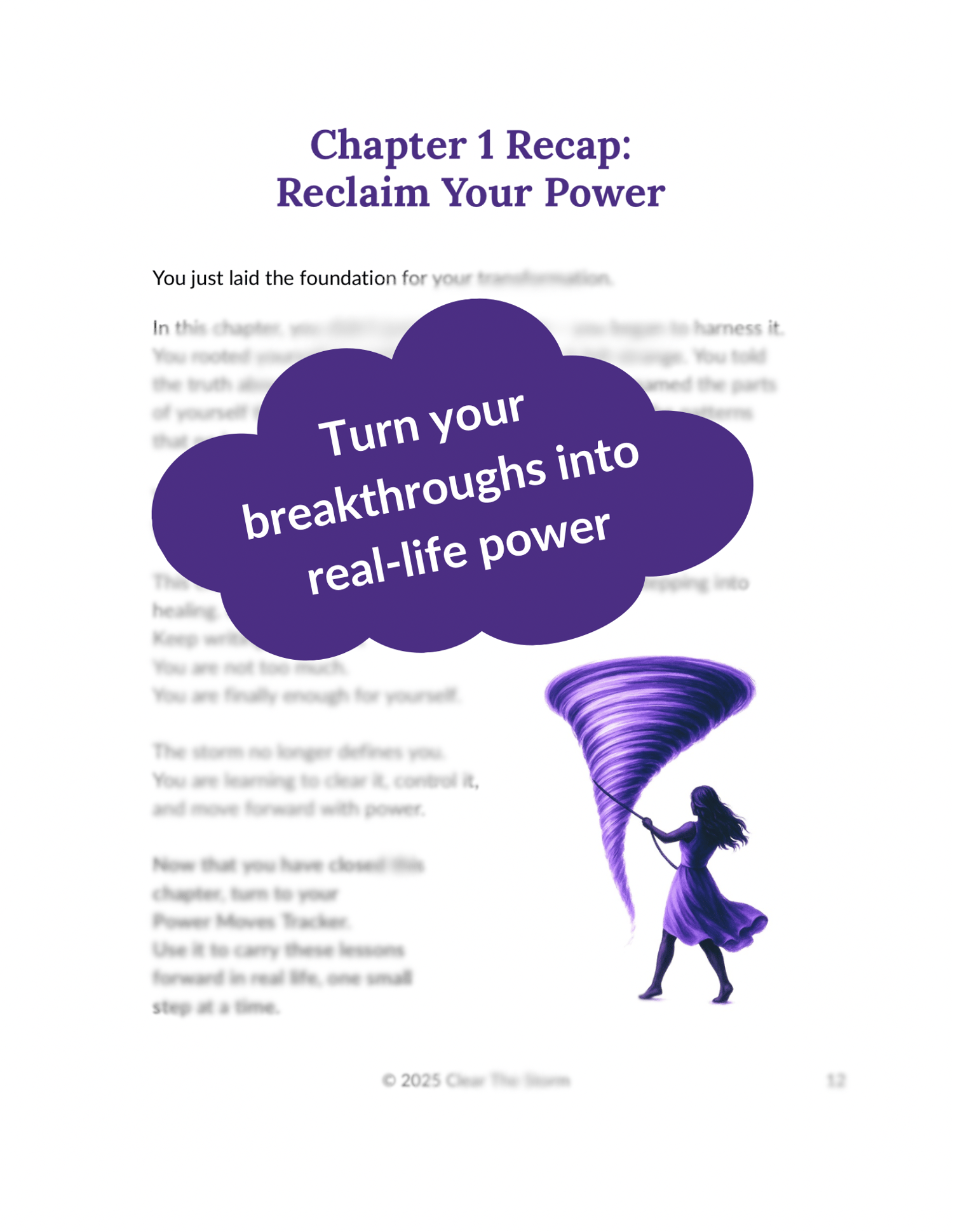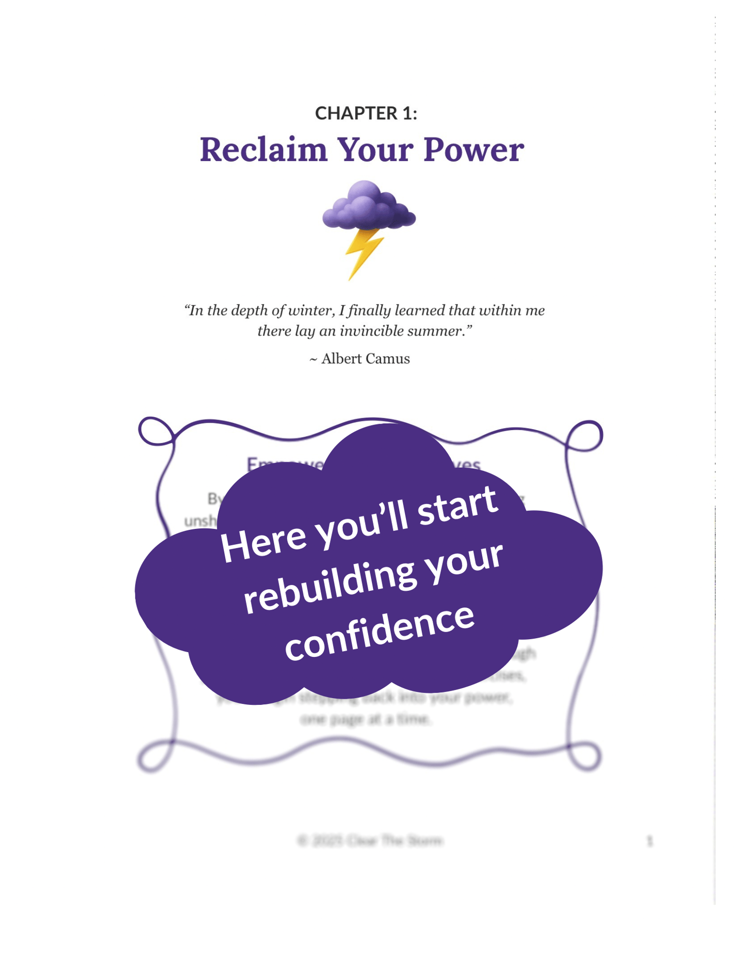Clear the Storm is a trauma-informed, fillable digital empowerment workbook designed to help you untangle painful patterns and rebuild trust in your decisions.