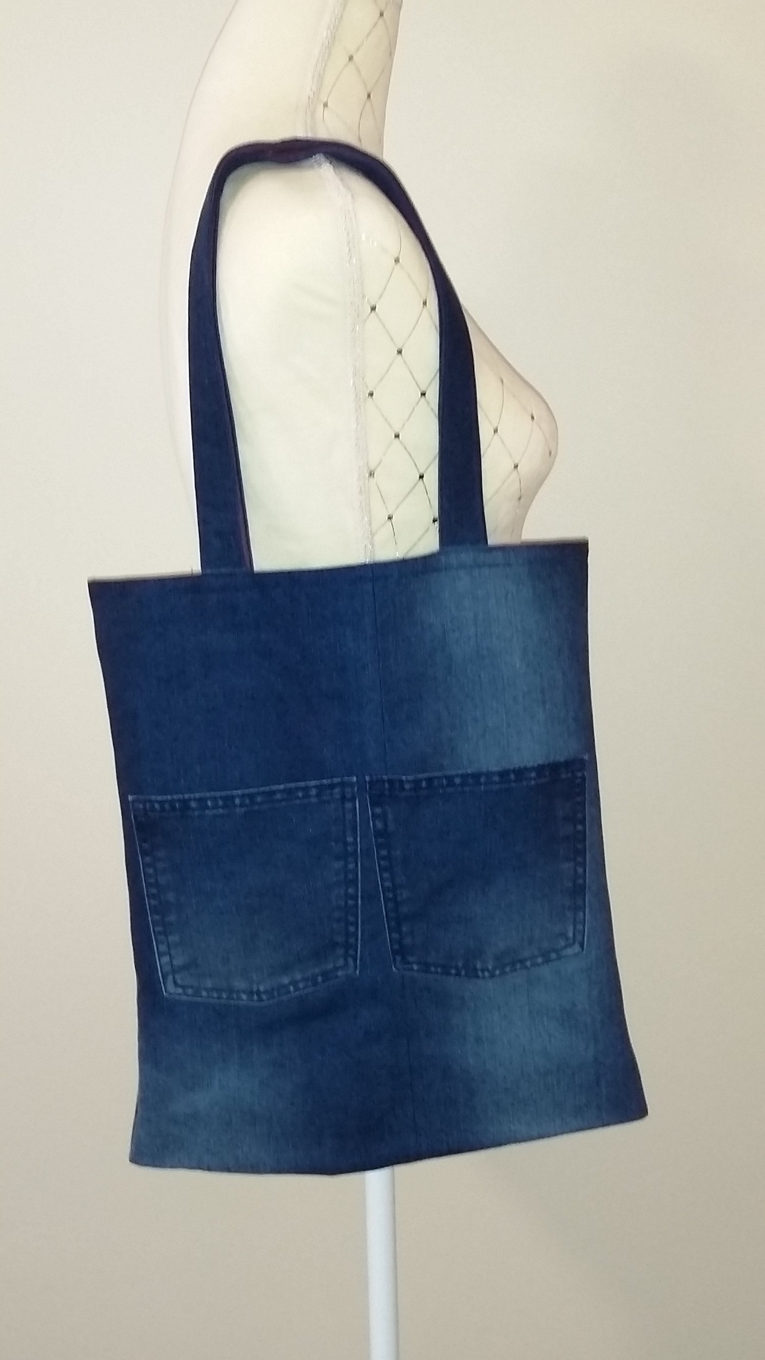Reversible Unisex Tote Bag with Pockets – Handmade from Reused Sweatshirt & Denim