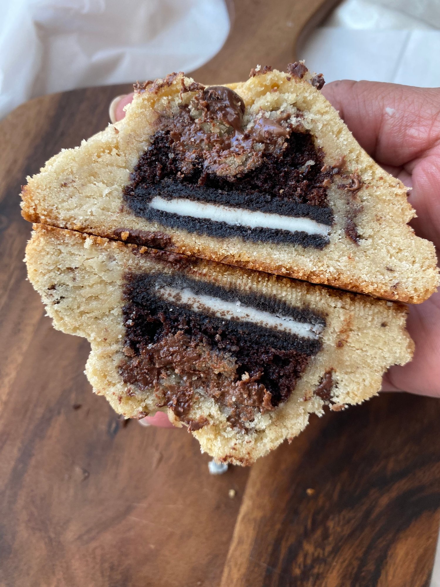 🍪 Esta receta premium es un éxito asegurado: galletas suaves por fuera, rellenas de Nutella y Oreo por dentro — una explosión de sabor en cada mordida.