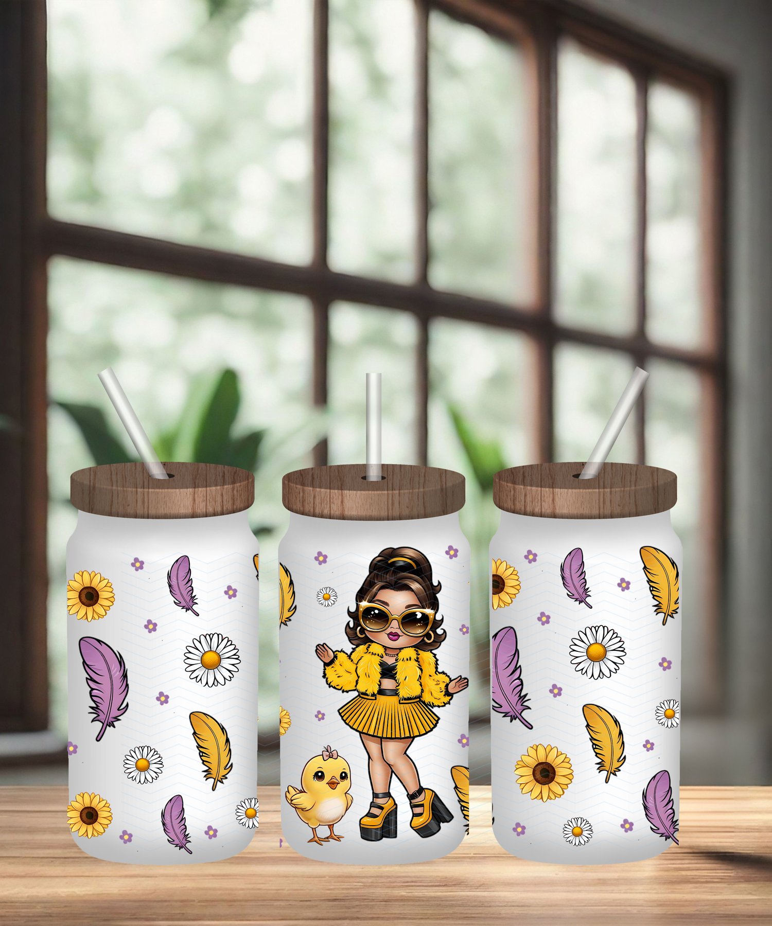 Chick Babe Spring 16oz Glass Cup PNG Design