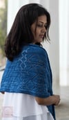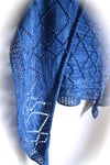 A lightweight shawl with lacy diamond stitches forming a pattern throughout the body and a simple mesh edge.