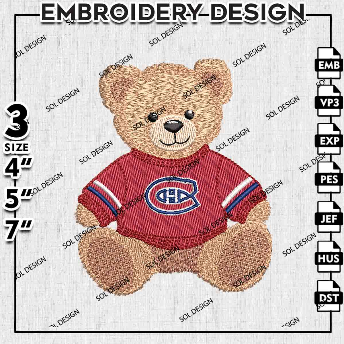 Montreal Canadiens NHL Team Teddy Bear Logo Embroidery Designs, NHL Montreal Canadiens Embroidery Files, NHL Canadiens Logo Embroidery, Hockey League Machine Embroidery Design, Cute Teddy Bear Sport Designs, Digital Do