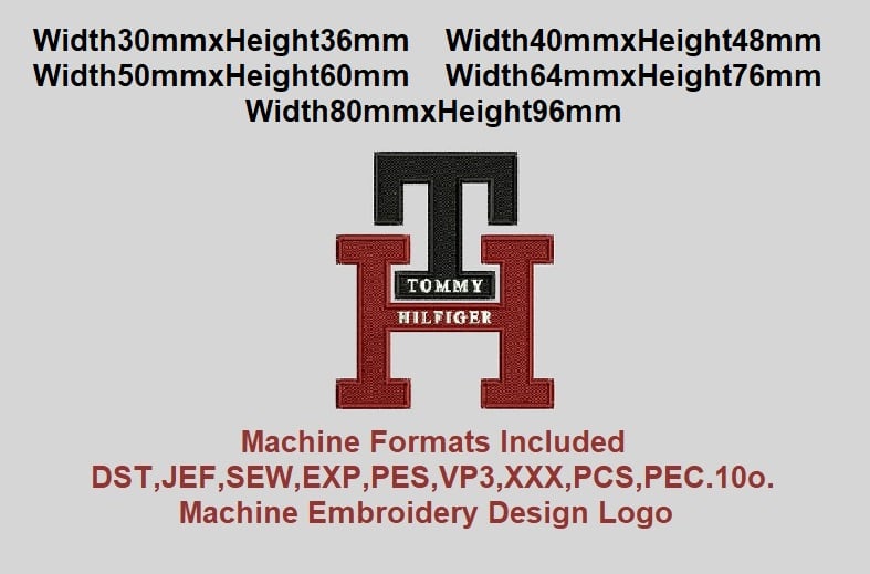 Tommy Hilfiger TH logo Machine Embroidery Logo 5 Sizes. Instant Download. The design sews