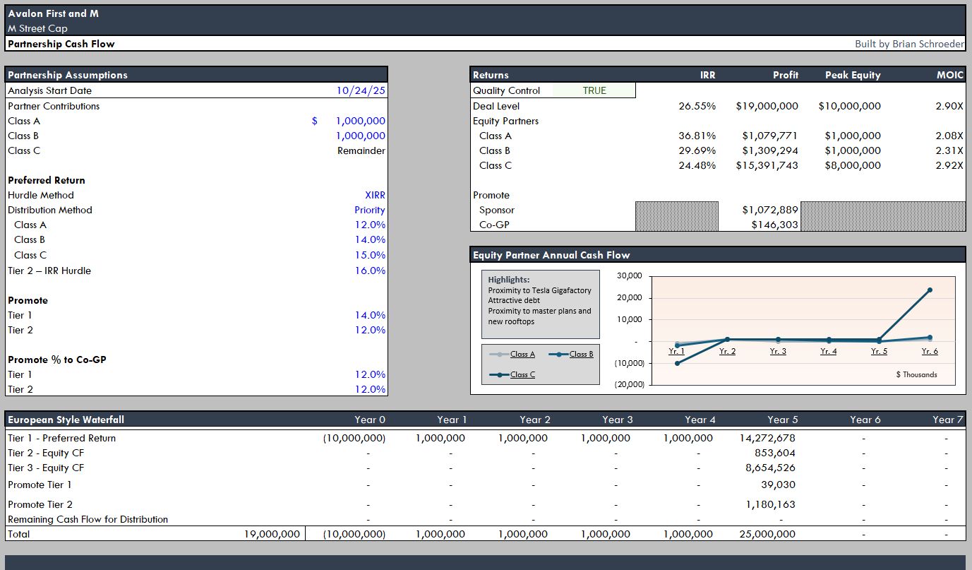 3 - Two-tier promote -- automated IRR hurdles driving promote allocation