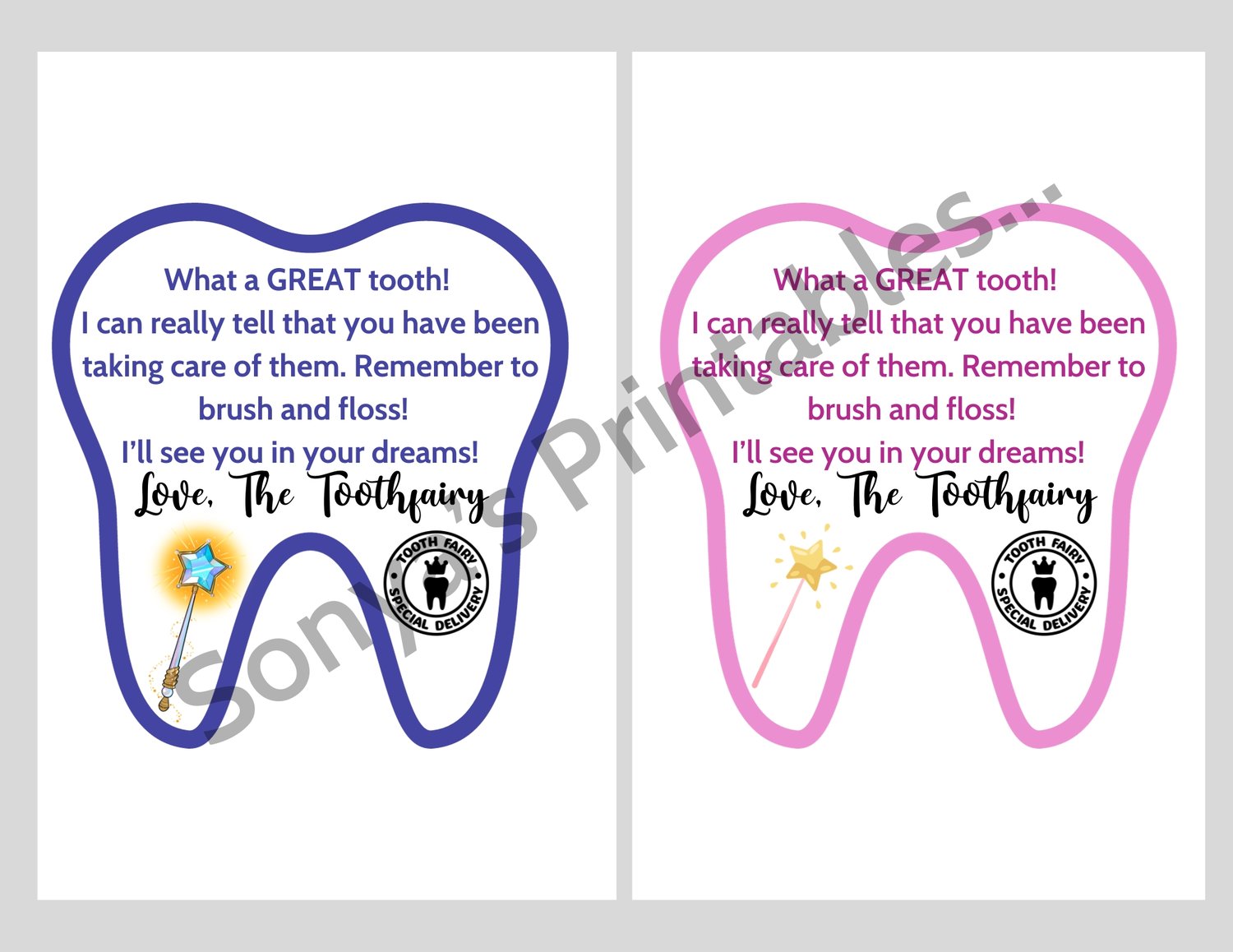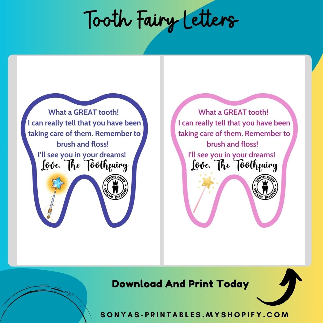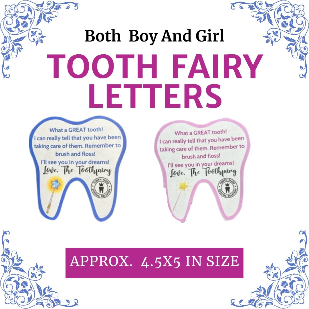 Bring a magical moment to your little one's day with this delightful 🦷Tooth Fairy Letter! Choose between blue for boys and pink for girls (you receive both) to create an unforgettable experience - perfect for taking memories to last a lifetime. 💌 These notes measure approximately 4.5 x 5 inches. You'll receive one PDF page. that contains both tooth fairy notes.Â