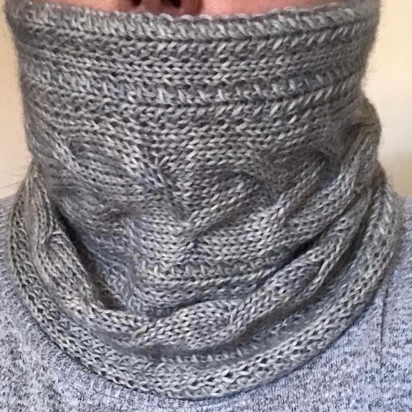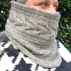 Using DK yarn this cowl is a great value one skein wonder and whilst the cables lend themselves to any DK yarn, they look amazing in yarns with a slight halo. Alternatively, you could always knit your favourite DK together with a lace weight mohair for that an added touch of luxury.
