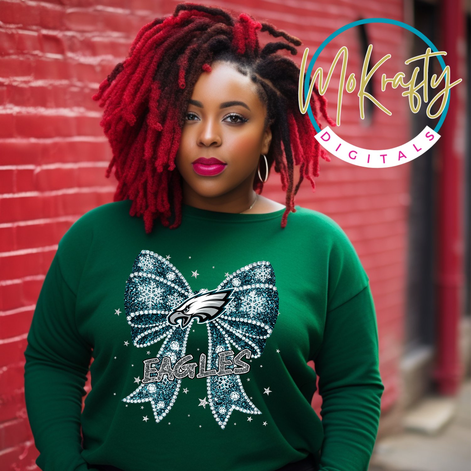 Glam Rhinestone Bow – Eagles PNG – Football Spirit Digital Download