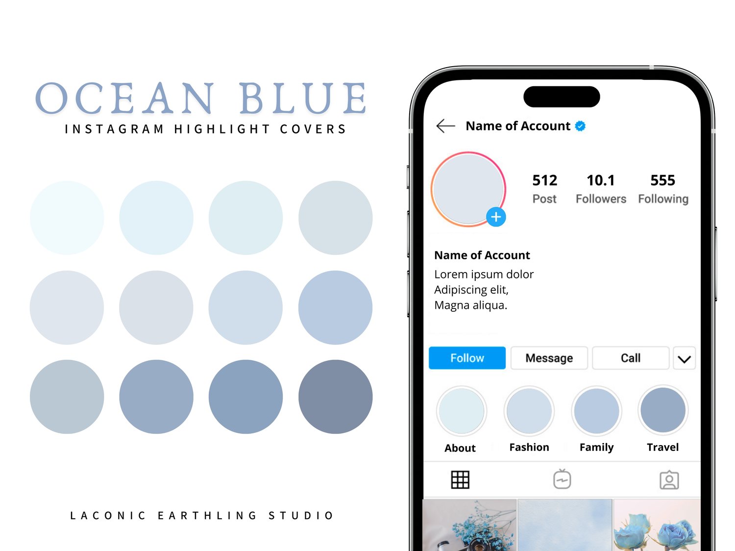 Social Media Instagram Ocean Blue Highlight Covers | Neutral Story Instagram Highlights | Editable Canva Covers | Navy Blue, Royal Blue