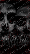 Saint & Alice skull-faces. Black and White. Wonderland. Neverland. Red scratch overlay.