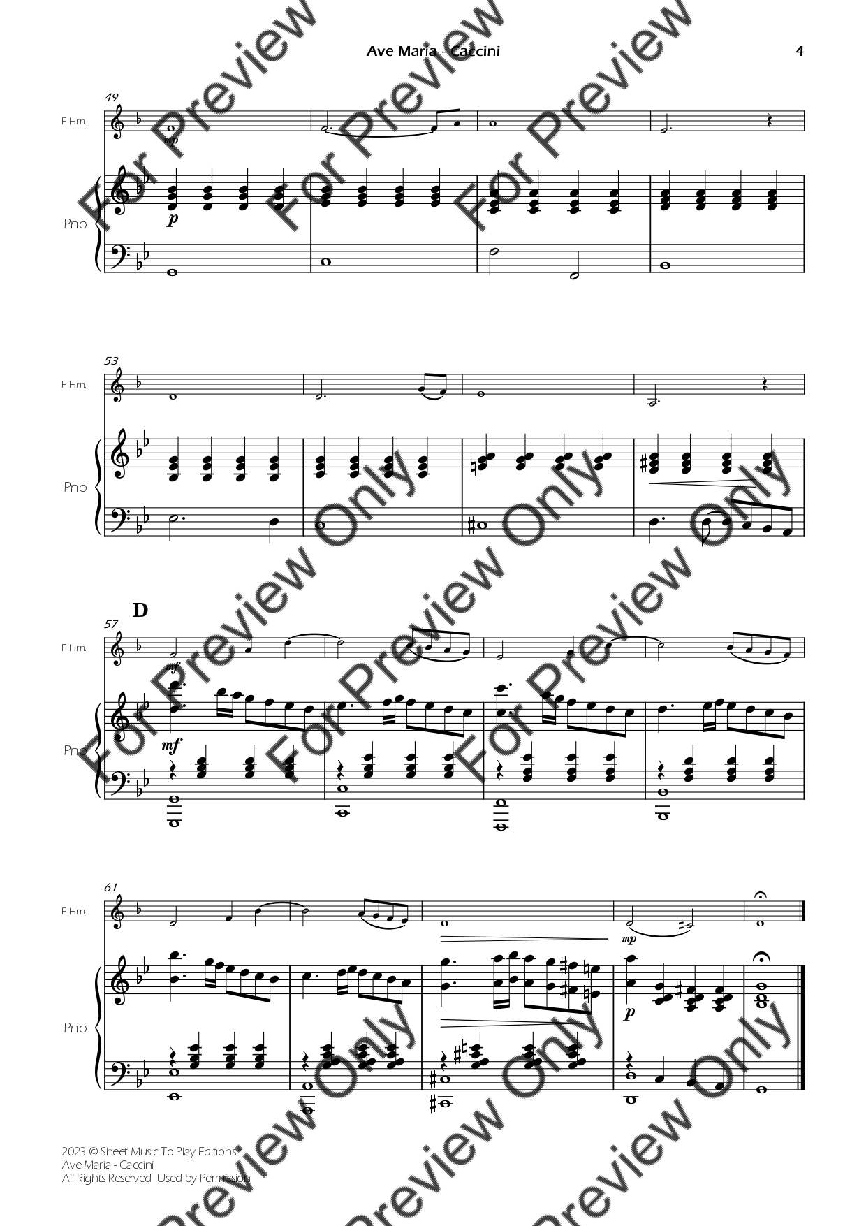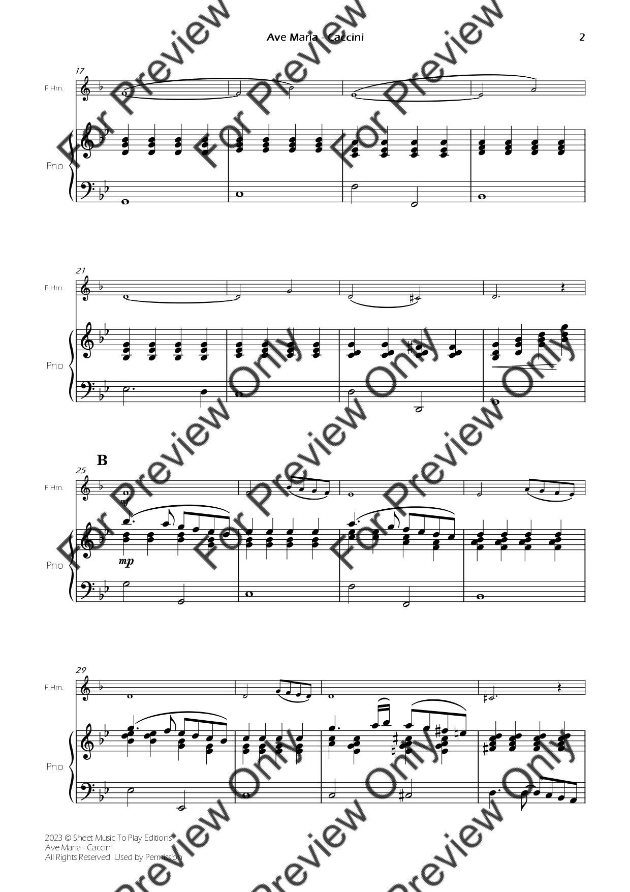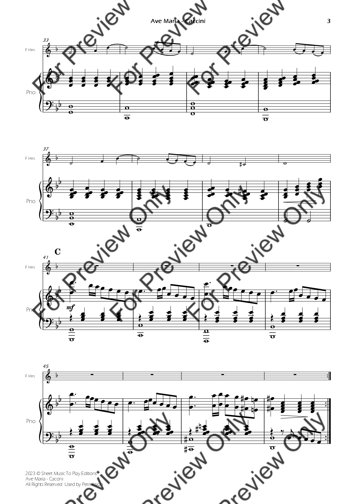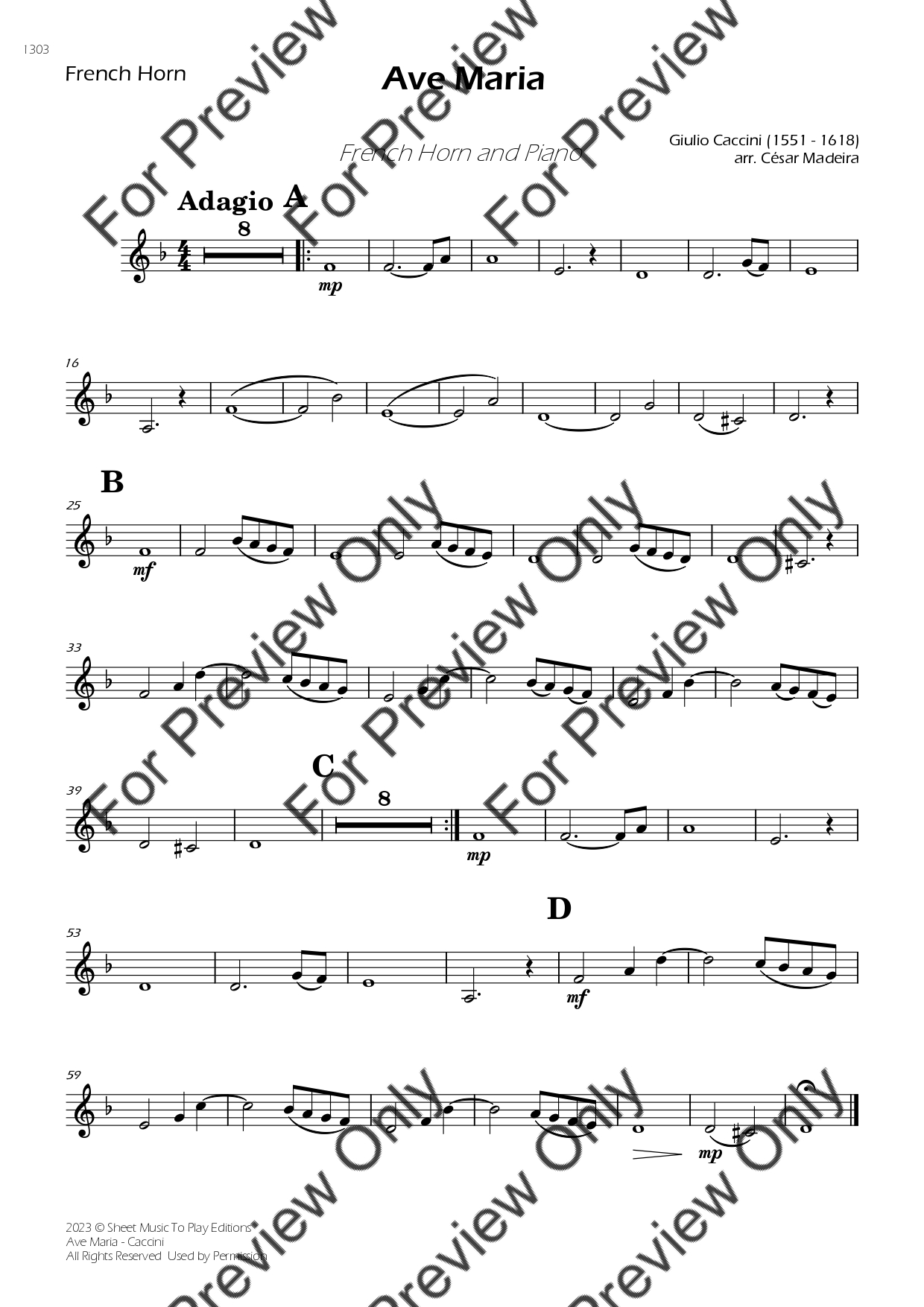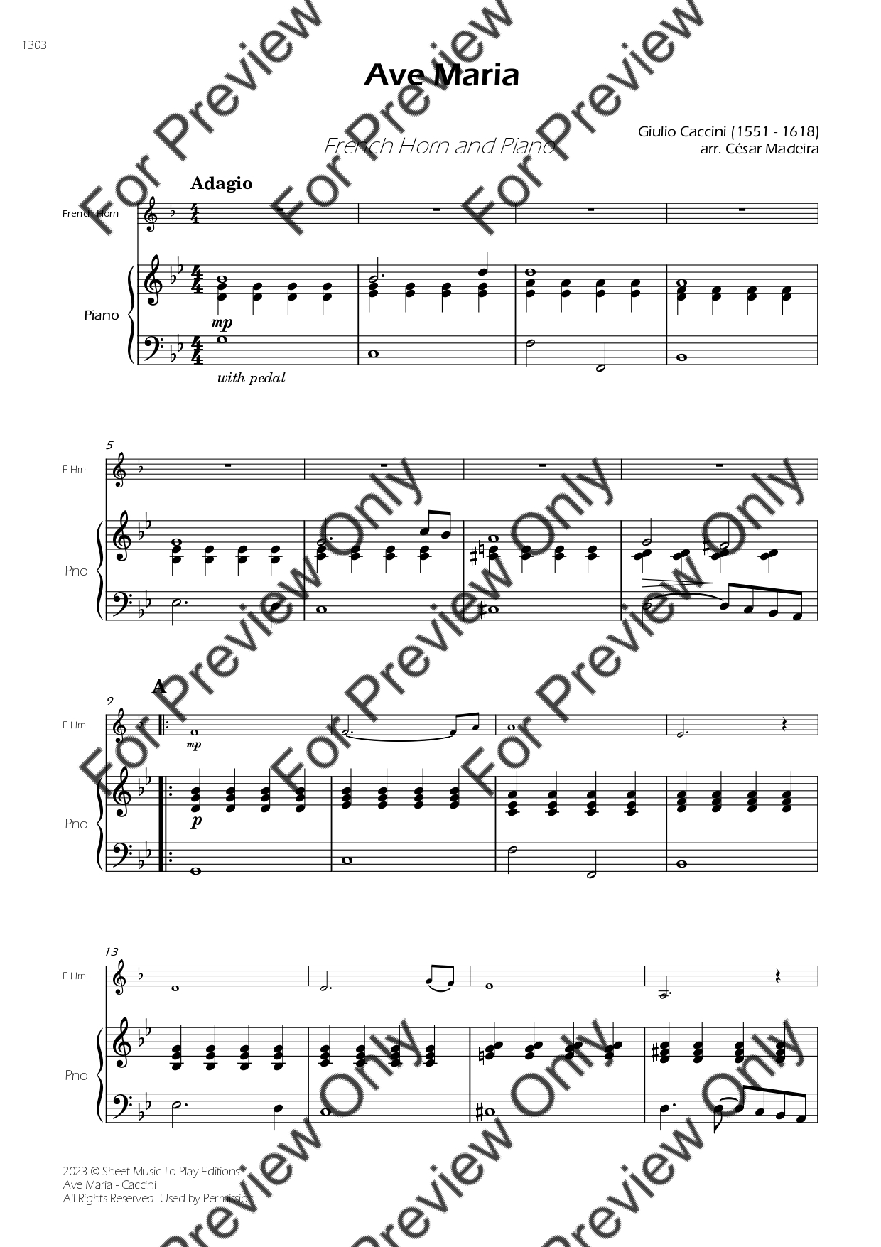Ave Maria by Giulio Caccini. Arrangement for French Horn and Piano. With Full Score and Individual Parts. Have fun!