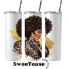 Luxury Afro Woman PNG Clipart | Melanin Queen Leopard Print Design | Commercial Use Sublimation File for T-Shirts & POD