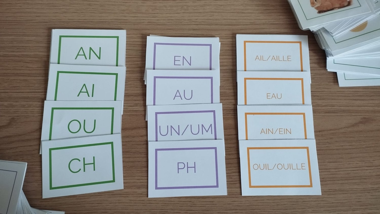 Offrez à votre enfant une expérience ludique et efficace pour progresser en lecture grâce à ces cartes de nomenclatures spécifiques avec tous les sons de la langue française : *ou, an, ouil,ou, an, ouil, ail, ion...