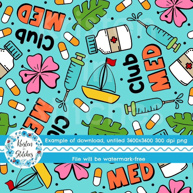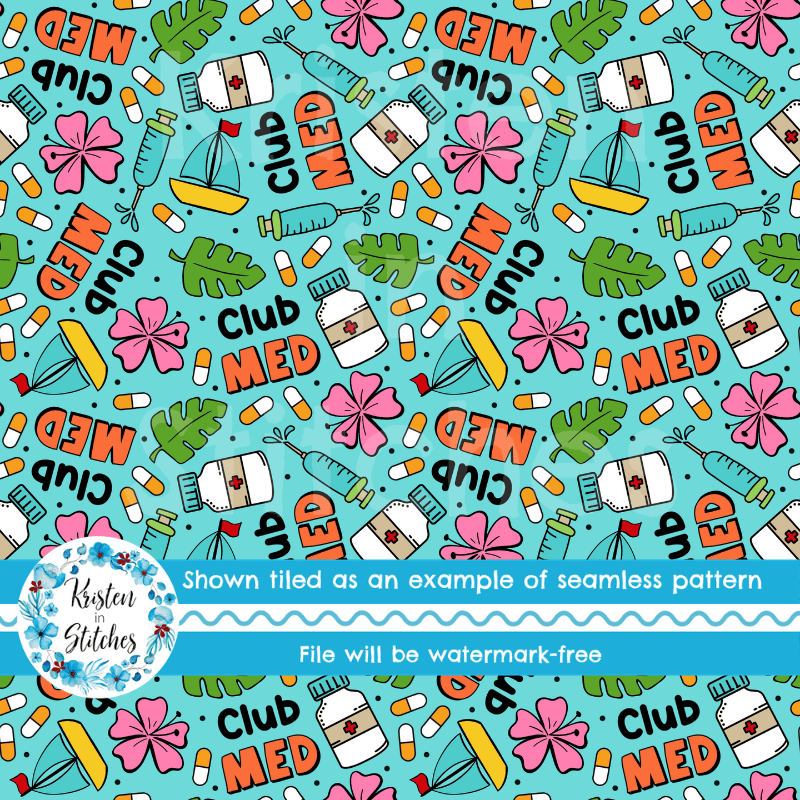 Club Med Seamless Pattern, Nurse Medical Humor, Blue