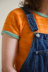 The Raglan Ringer Tee is a classic wardrobe staple, worked with a simple top-down raglan construction and a folded hem, collar, and sleeve cuffs. The pattern contains options for a striped or solid tee.
