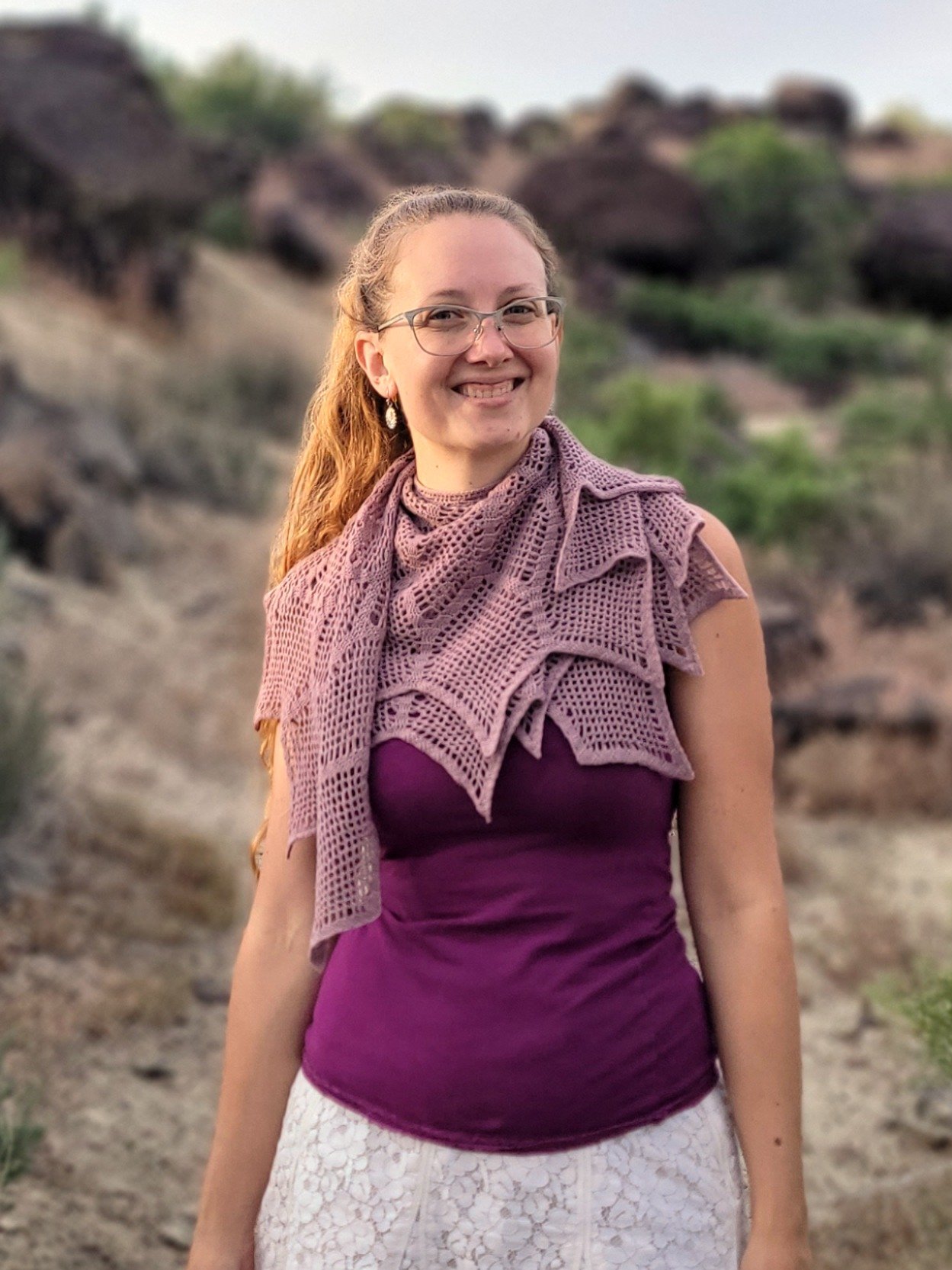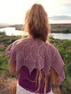Ada is a donut shaped shawl worked from the neck down. It features an art deco inspired design with a crystal shaped pattern in a mesh background that is surprisingly quick and fun to make.