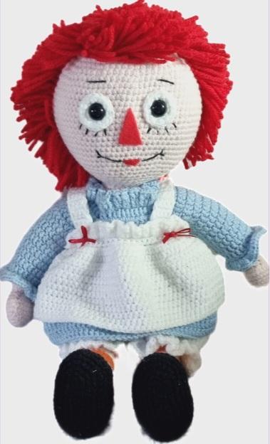Here we have ' Ragdoll Annie’ She is made up of basic stitches and rounds, is worked in DK (8PLY), stands at approximately 12" in height and is written in US terminology and are suitable for beginners and above, the pattern includes the following:-