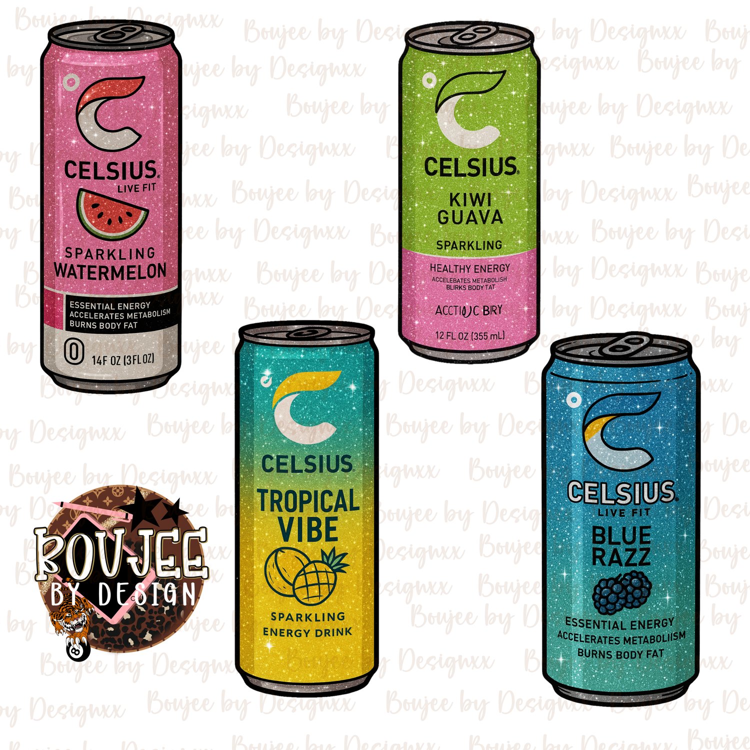 Sparkly Celsius Energy Drink Can PNG Bundle + 1 Surprise Bonus File | Watermelon • Kiwi Guava • Blue Razz • Tropical Vibe | 300DPI Sublimation