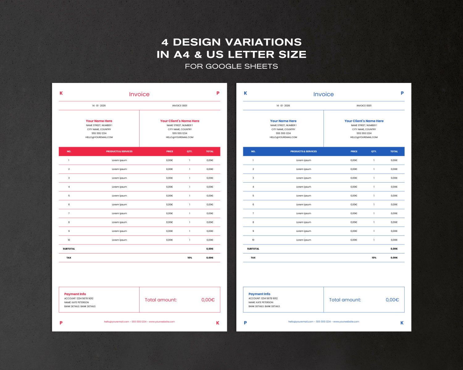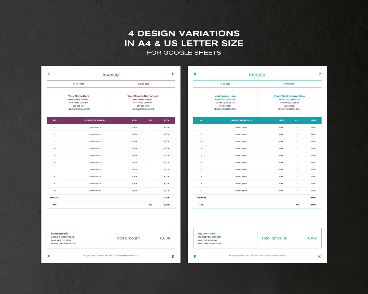 Invoice Template with Color Headers – for Consultants, Excel & Google Sheets
