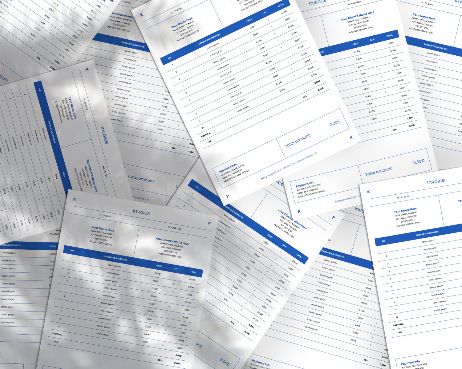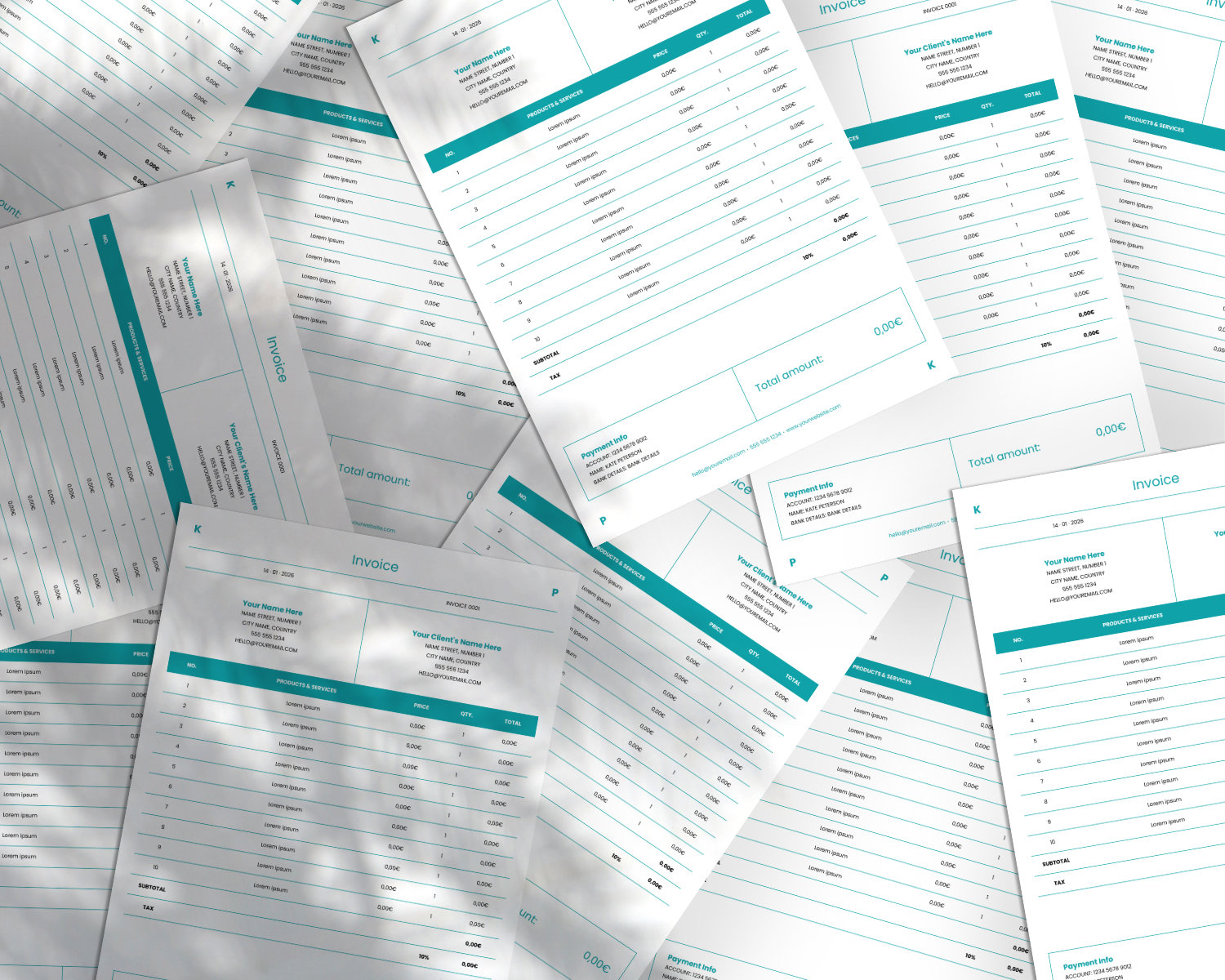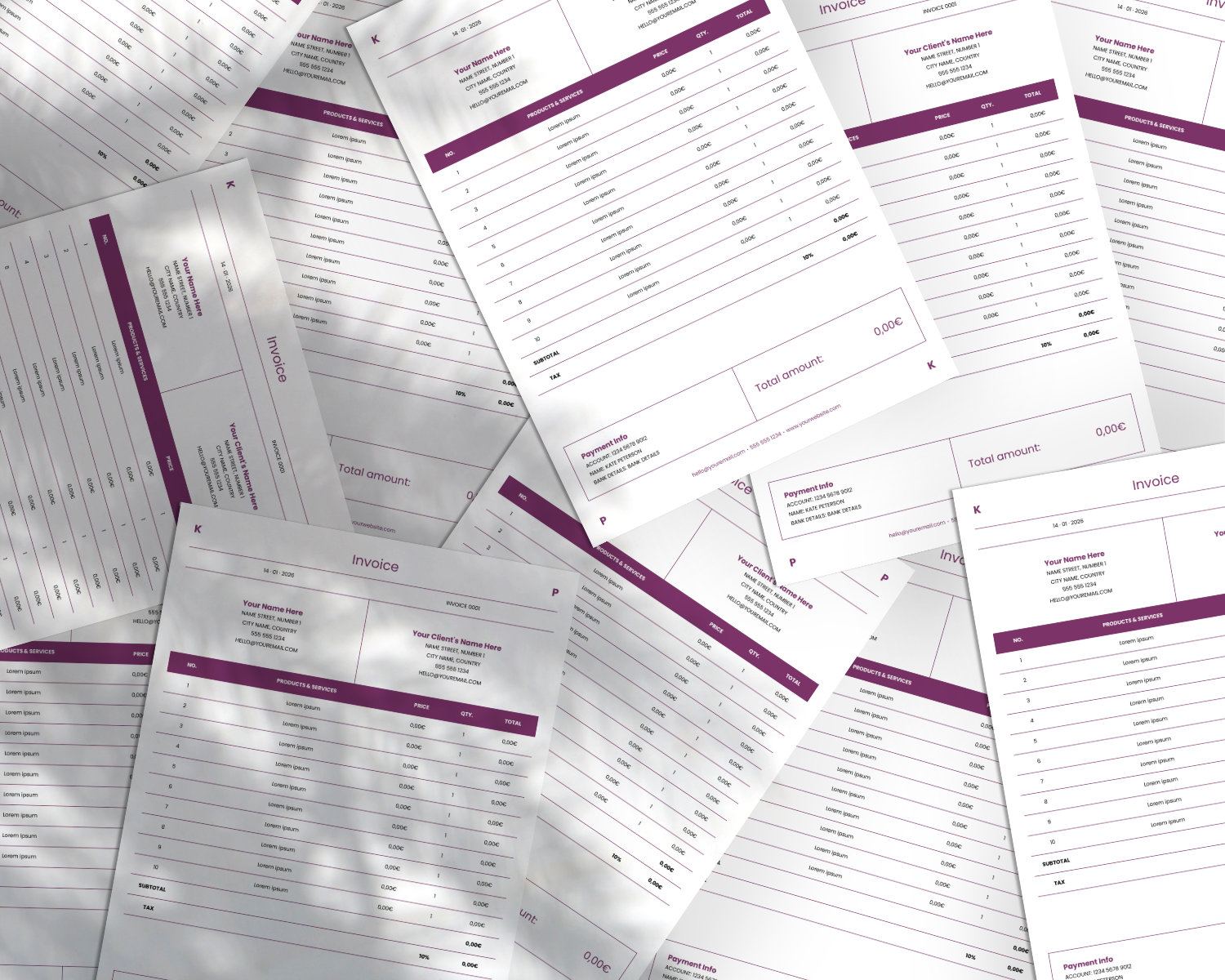 · 8 Invoice templates with automatic calculations.