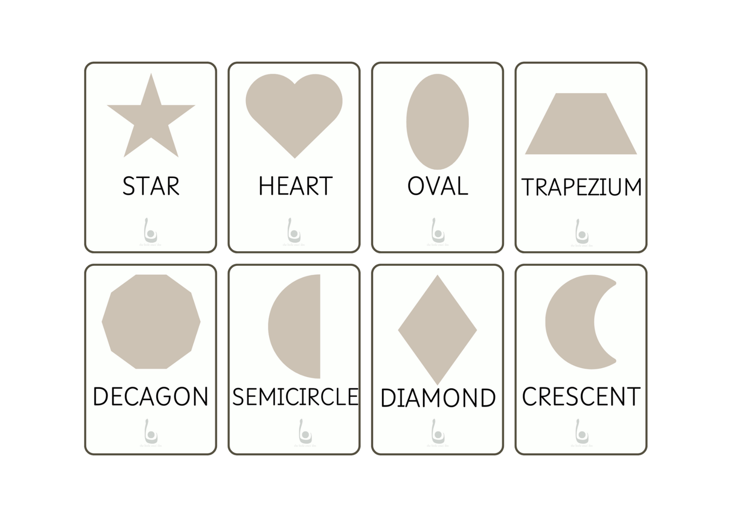 Shape flashcards to teach and support young children the names of common shapes. Perfect to display in learning corners at home or in the classroom.