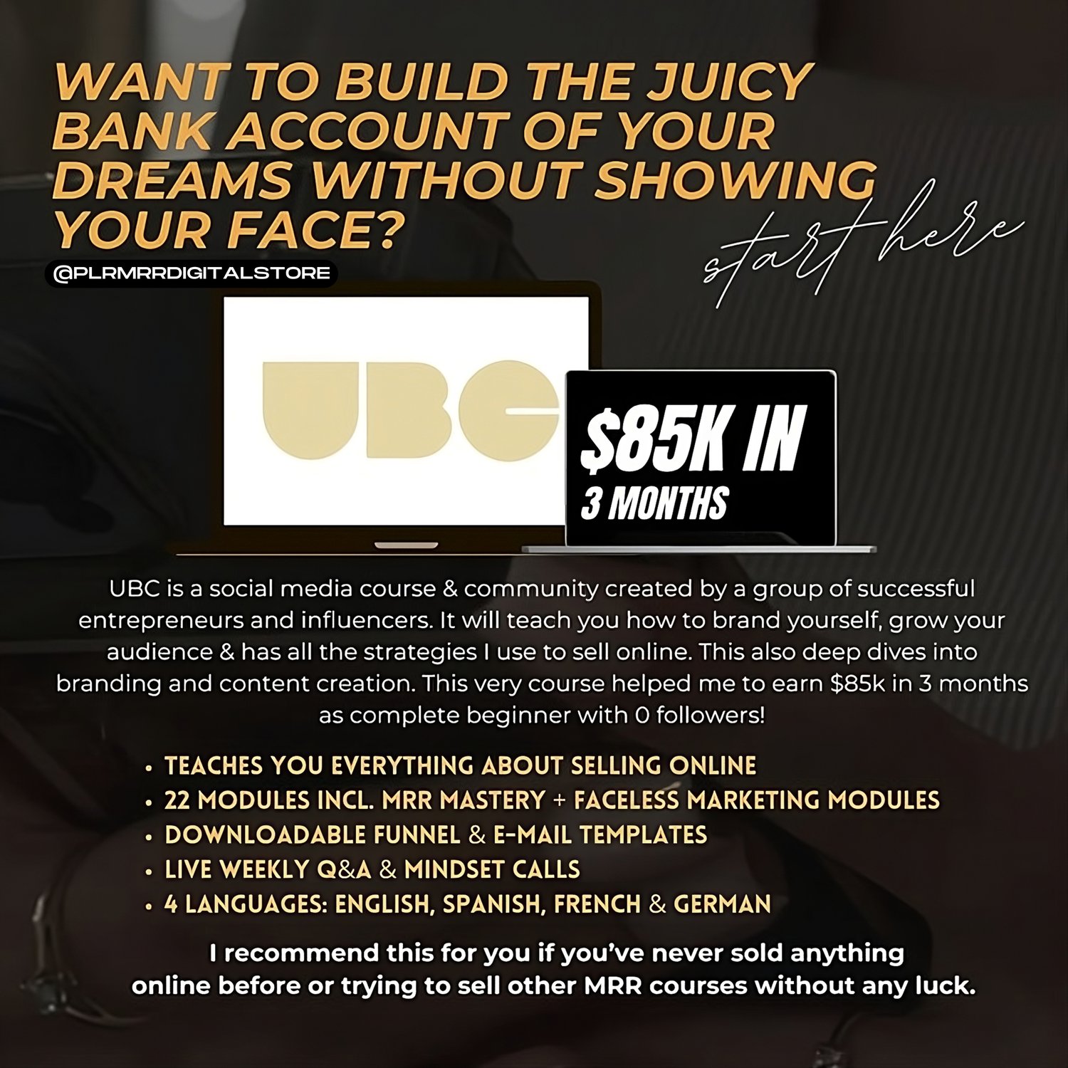 Whether you are a beginner, have seen everyone making money online with Digital Marketing, and want to step into it, or have already bought 1 or more MRR courses out there (RoadMap, LEPO, PPM, or Simply Passive) and are thinking, "Do I really need another?"—even if you have already sold 100s of these courses—UBC is a game changer because all these courses focus more on setting up the business and backend systems. Some of them are very beginner-friendly, but UBC actually teaches you how to SELL! So even if you have already sold hundreds of these courses, or you are a newcomer, this course will be a great addition.