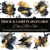 Black and Gold Watercolor Clip Art Set