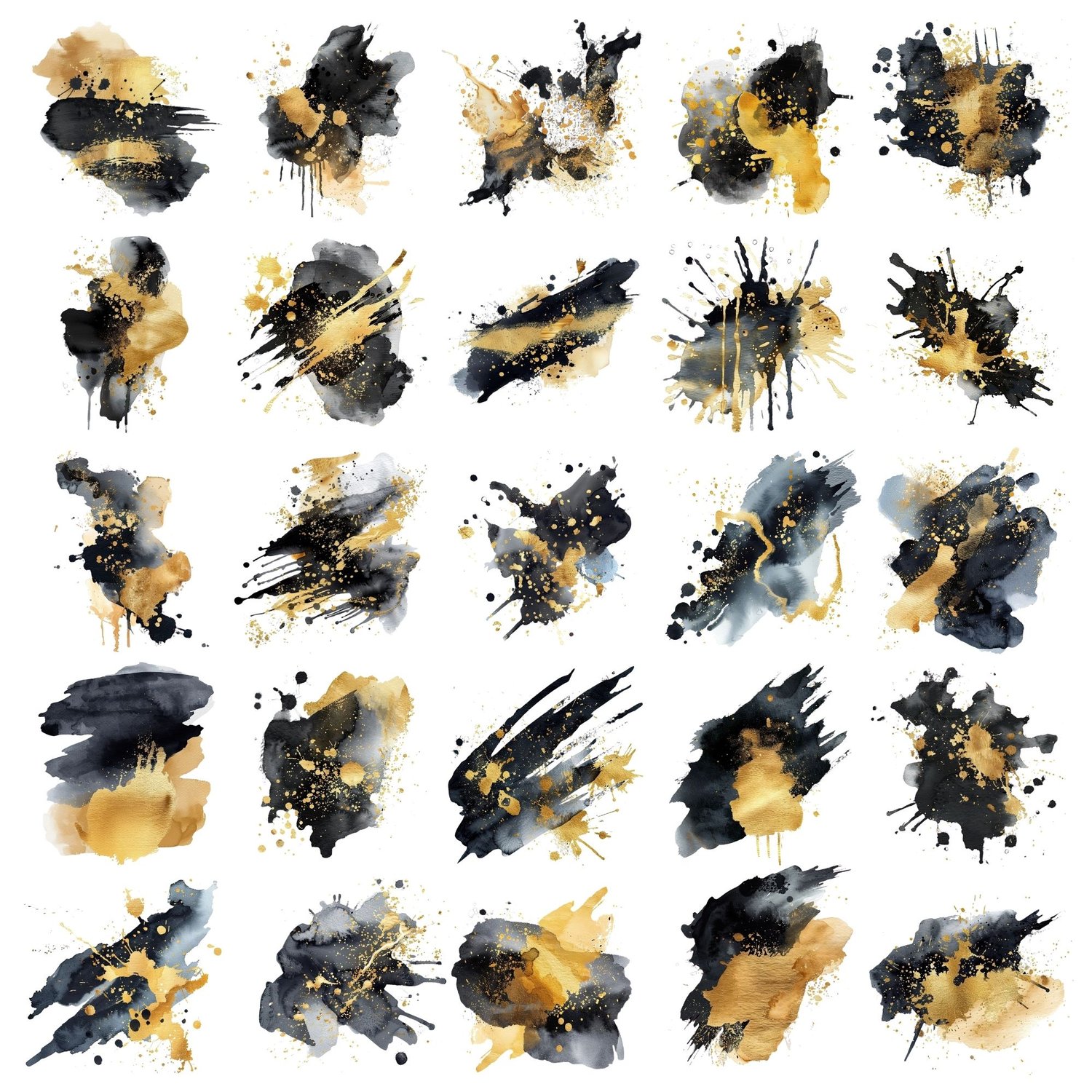 🌟 Branding: Create a stunning brand identity with unique black and gold splash designs. Perfect for logos, business cards, and packaging that stand out.