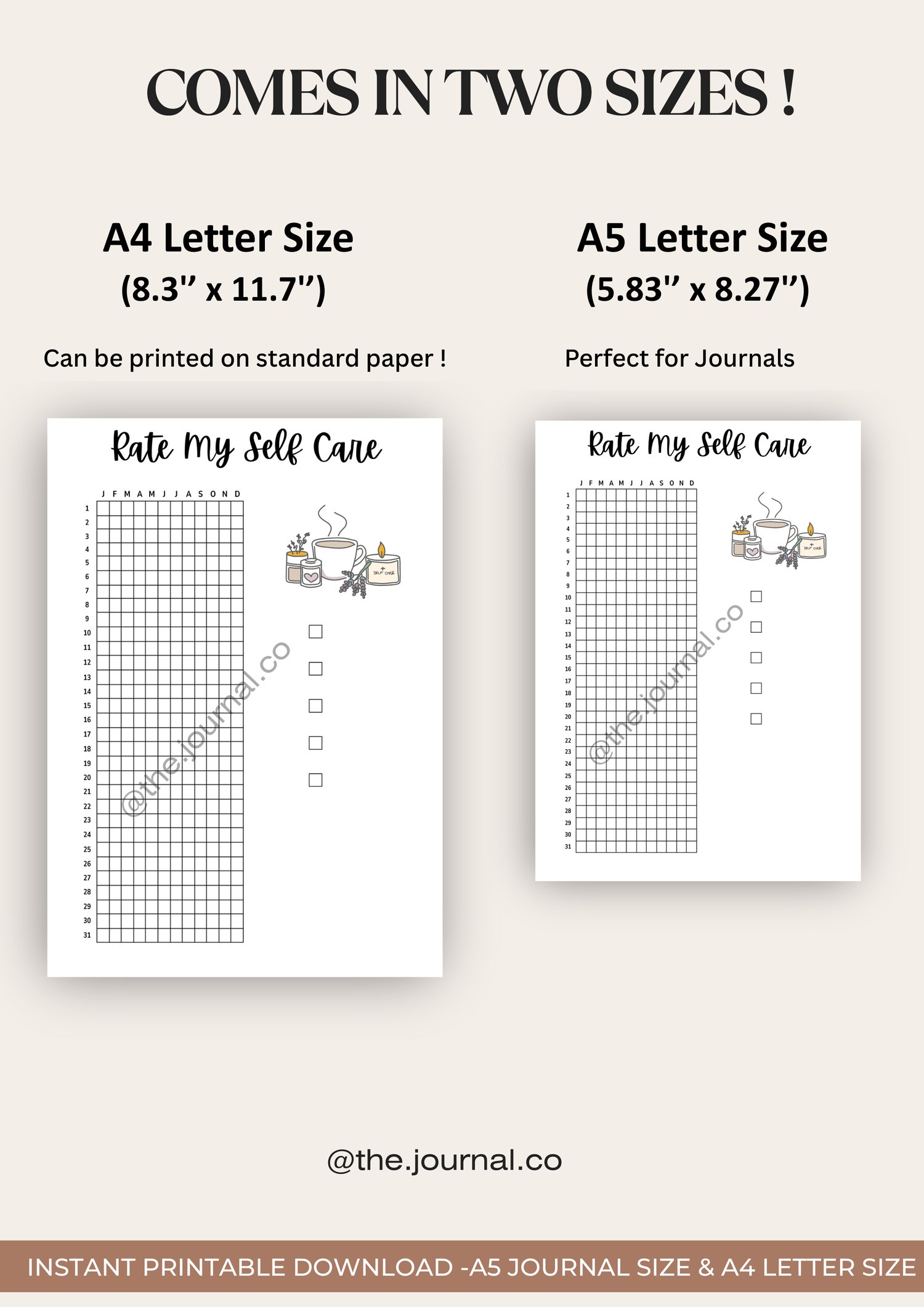 Yearly Self Care Rating - A4 Letter size & A5 Journal size