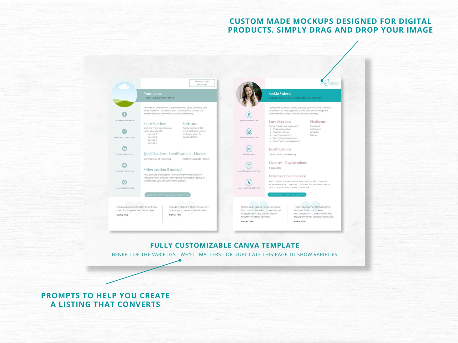 If you sell digital products on Etsy or Payhip, you'll know how time consuming it can be to design your digital product listing graphics. My versatile and professional Canva templates simplify the product listing creation process.