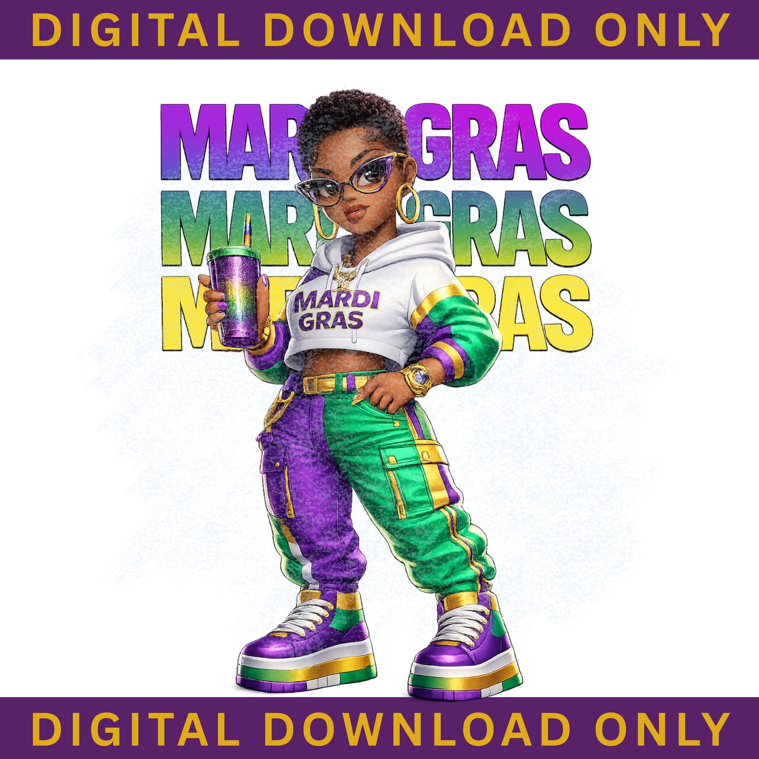 Mardi Gras Black Girl PNG, Afro Mardi Gras Sublimation, DTF Shirt Design, Carnival Clipart, Instant Digital Download