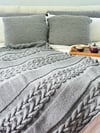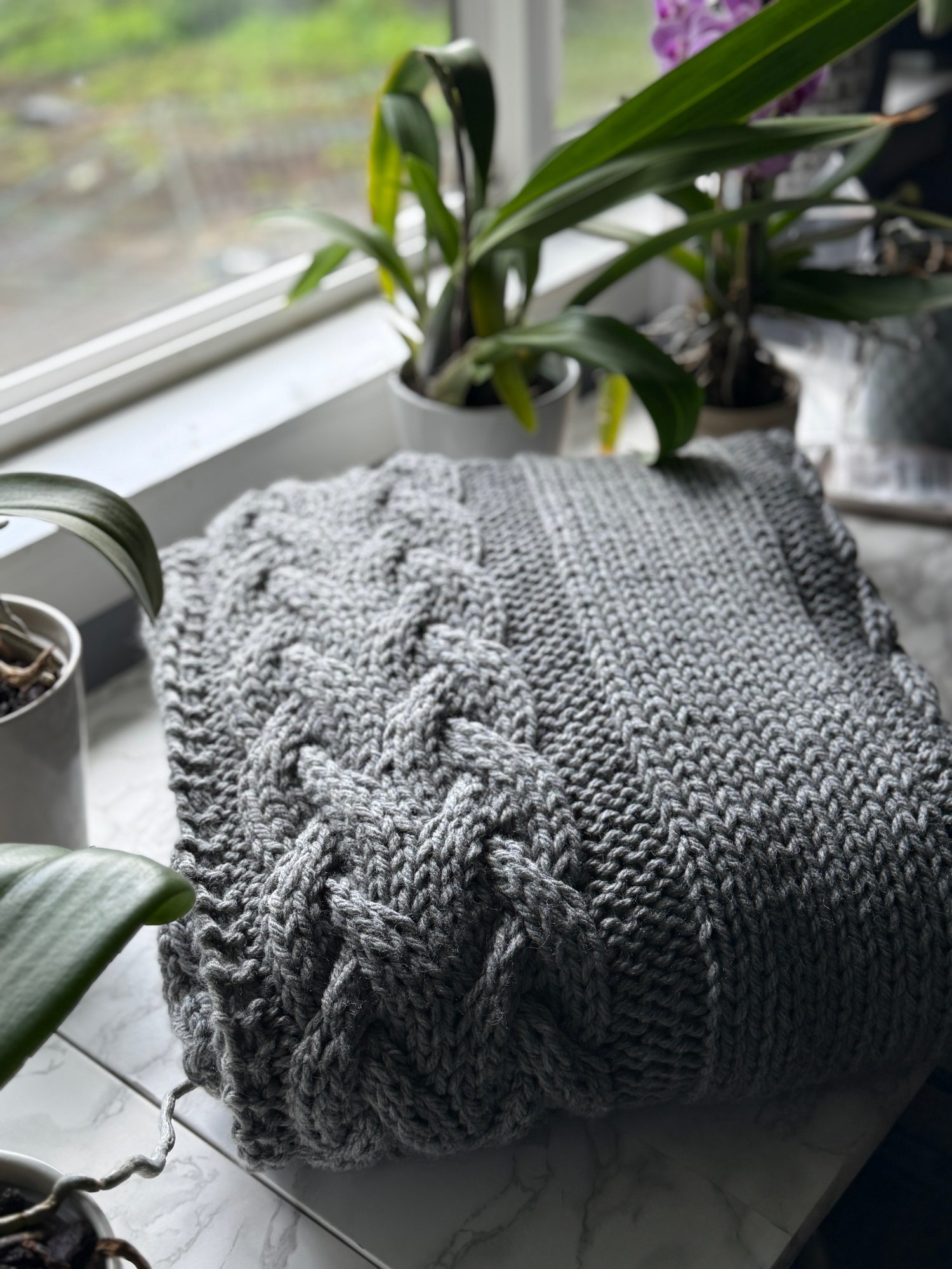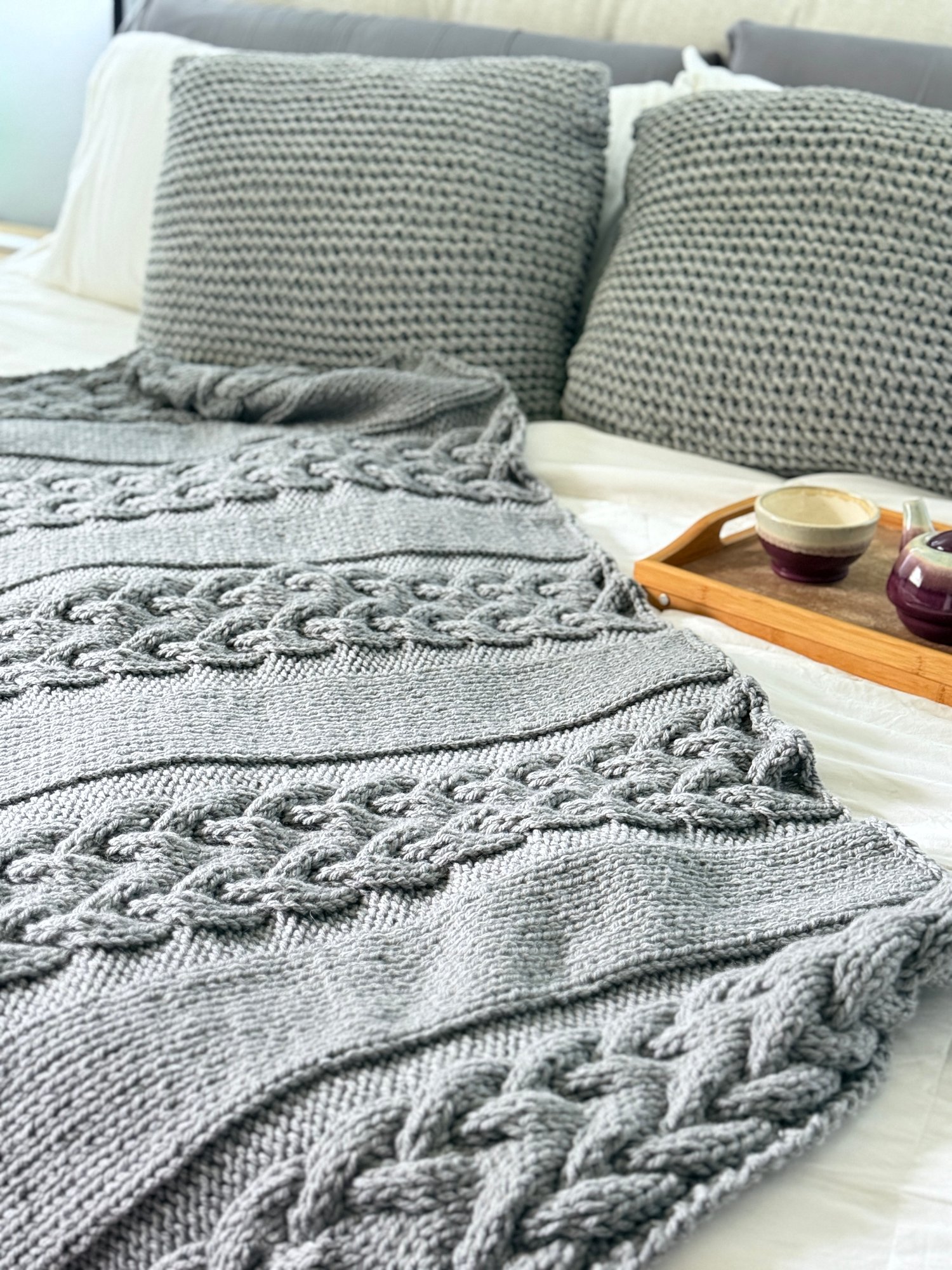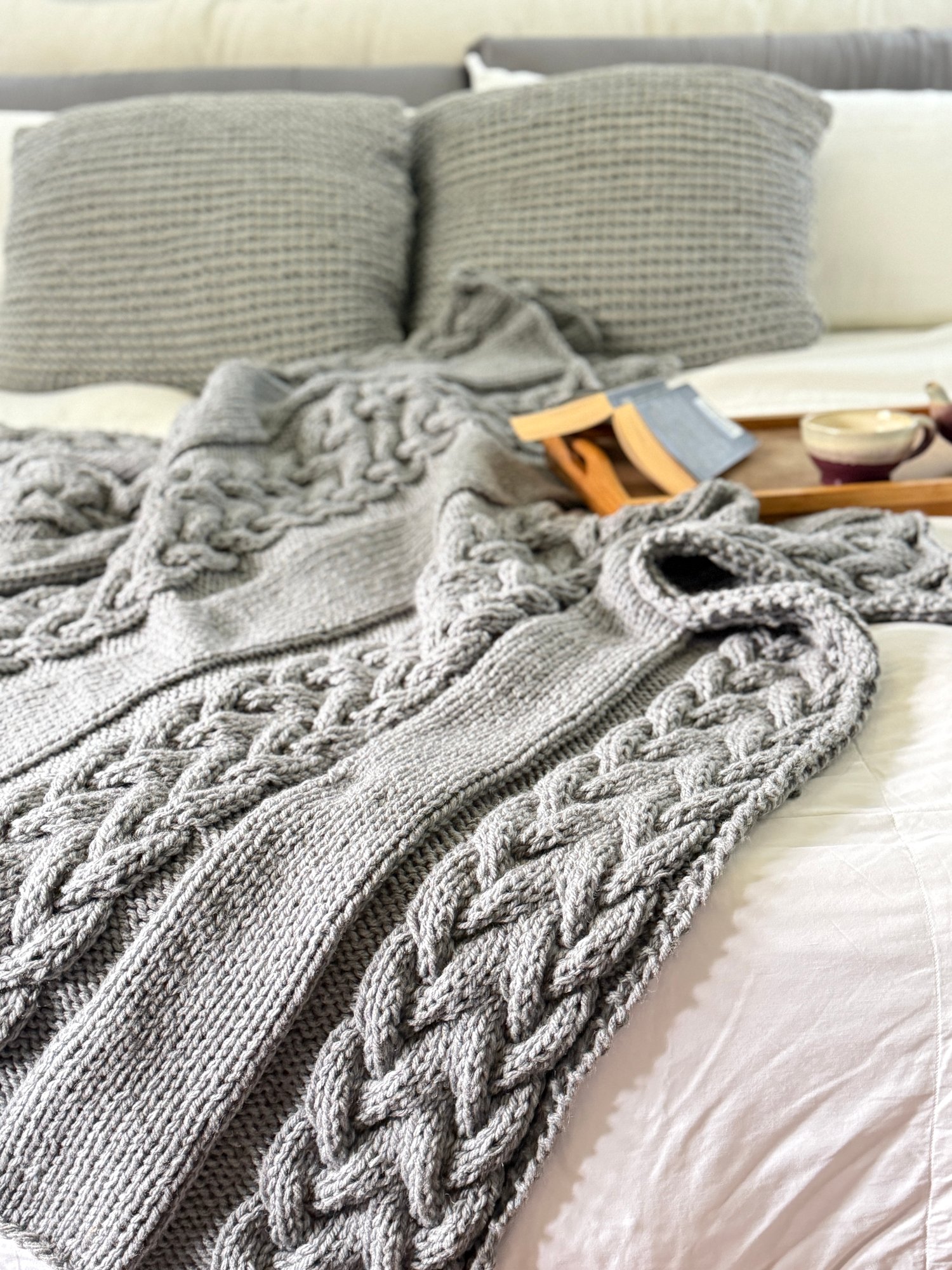 As the chill begins to knock at our door. Cups are filled with a steamy beverage. Your favorite corner is beckon you to curl up and spend the day. Embracing all the comforts by grabbing your current read along with the coziest blanket, you curl up and immerse yourself in every word. All the signs and comforts of the changing seasons the one knit that is like the cherry on top is a knitted blanket, the Austin Blanket will quickly become THE blanket for these self-care moments.