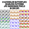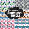 Watercolor seamless bundle with 25 seamless patterns in 300 DPI, 3600x3600 pixels JPG files.
