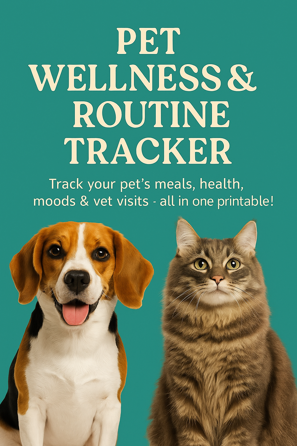 Take the stress out of pet care with this easy-to-use printable Pet Wellness Tracker. Whether you're a dog lover or a cat parent, this planner helps you keep track of everything from vet visits to grooming, feeding, and daily habits — all in one place!