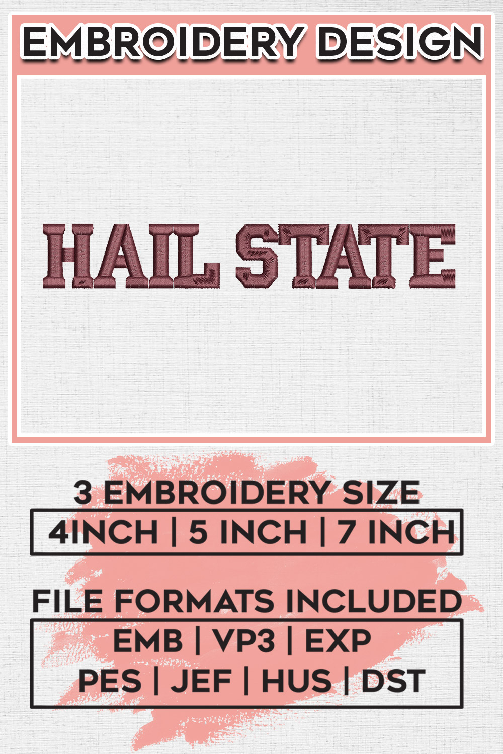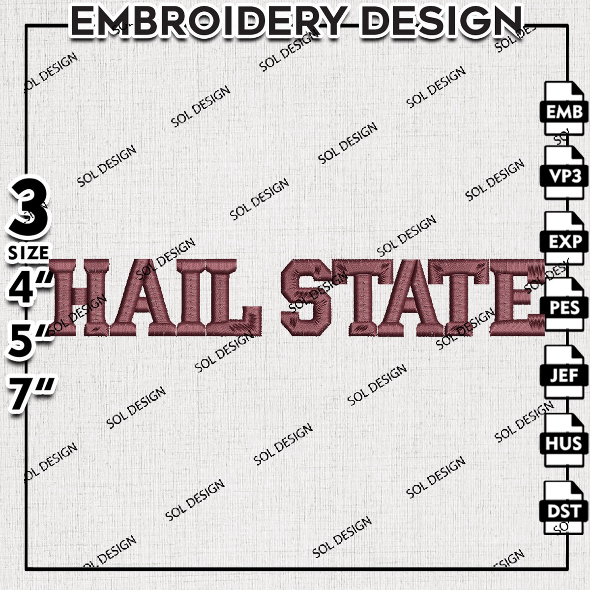 NCAA Hail State College Football Team Logo Embroidery Designs, NCAA Mississippi State Bulldogs Machine Embroidery Files, NCAA Logo embroidery designs, NCAA Mississippi State Logo, Digital Download