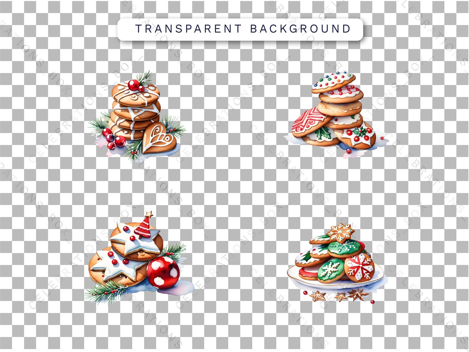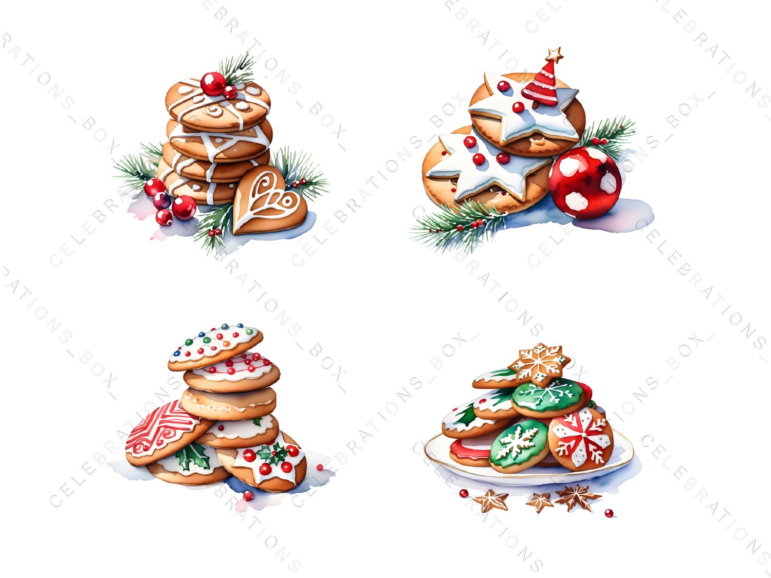 Watercolor Christmas Cookies Clipart