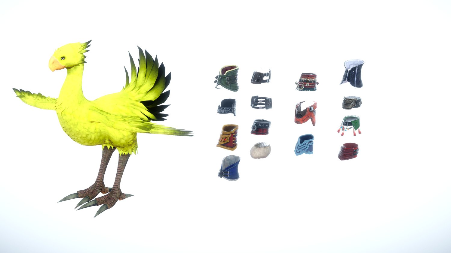 Don't forget the "FFVII_Chocobo_Neck.zipmod" Fifteen pieces of neck armor to give your chocobos some extra oomph.