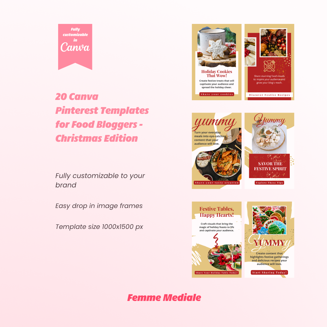- 20 festive Pinterest templates designed specifically for food bloggers.